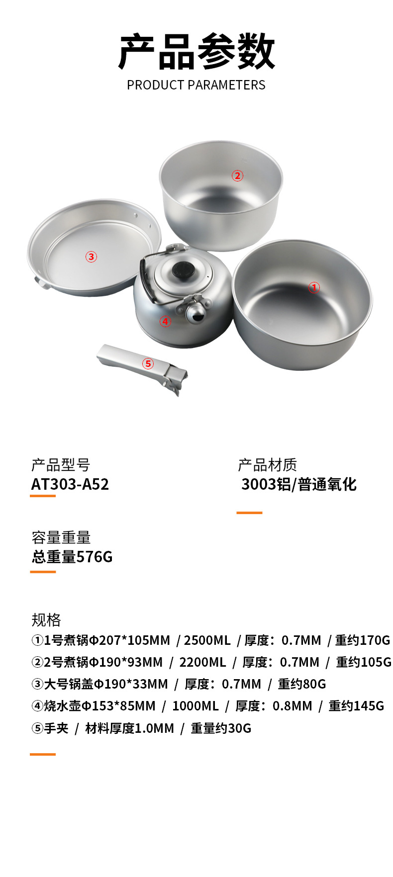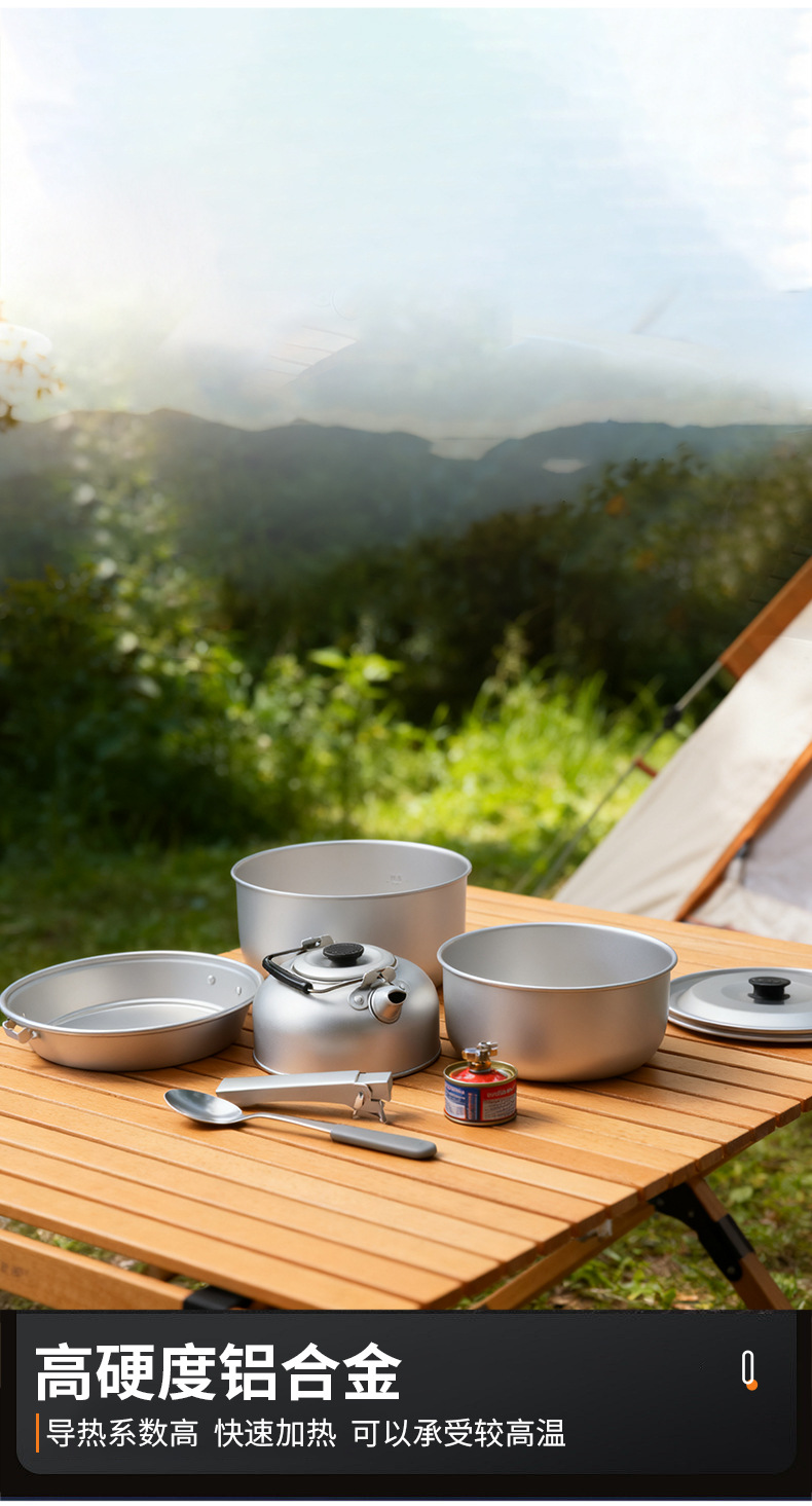 户外野营锅套装五件套定制炊具烧水壶煮锅卡式炉具便携铝制露营锅