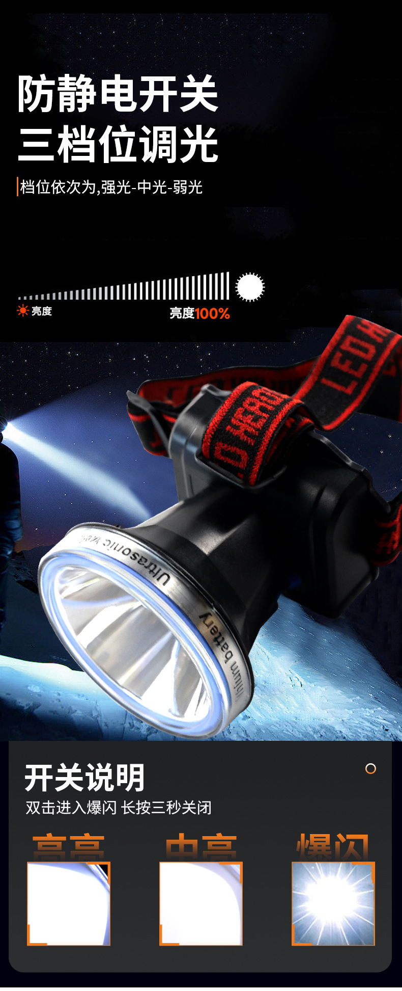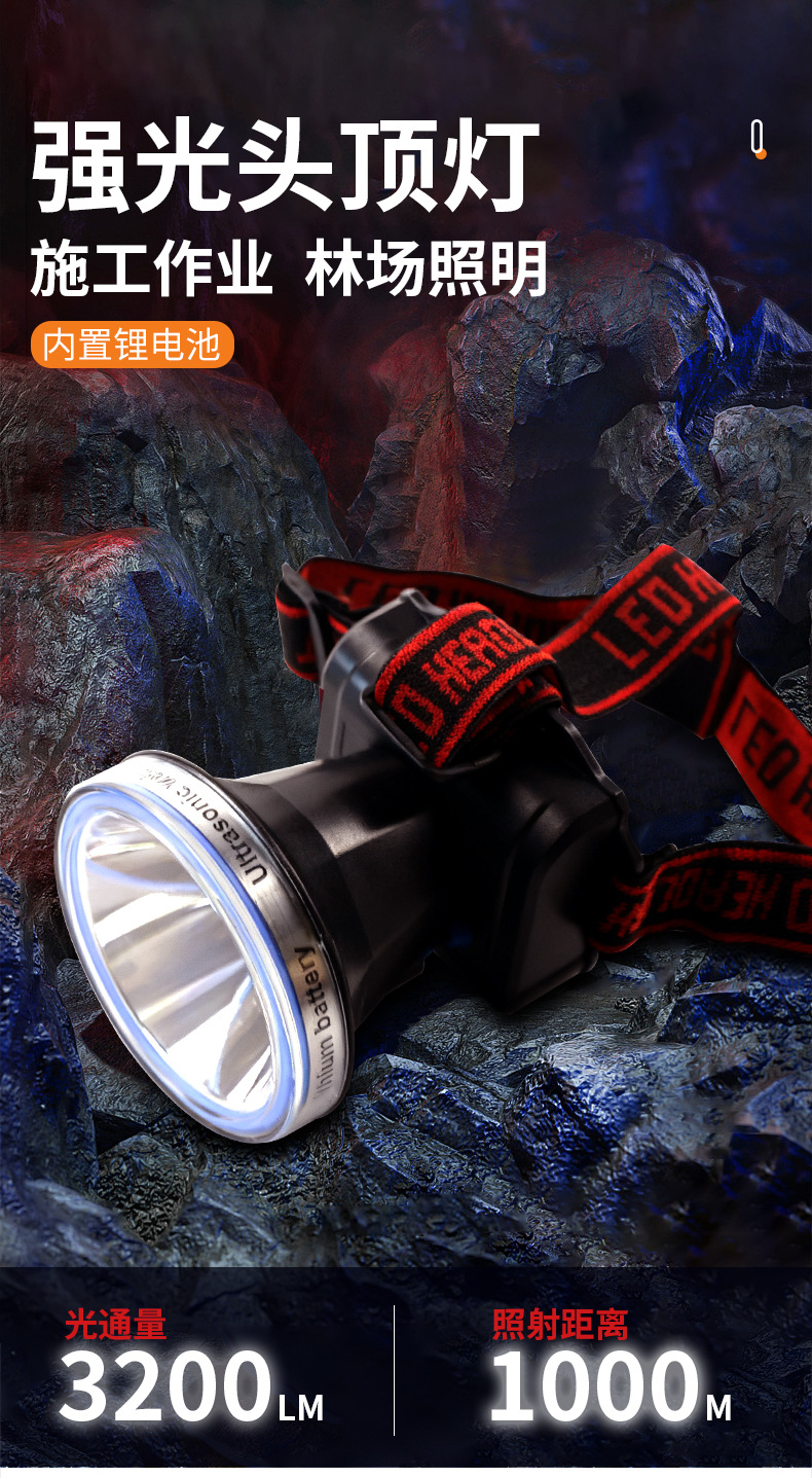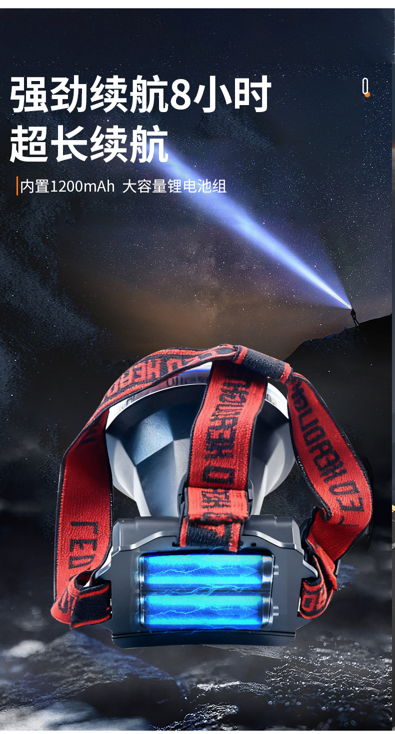 跨境锂电感应头灯户外夜骑钓鱼灯led矿灯长续航施工作业专用电筒