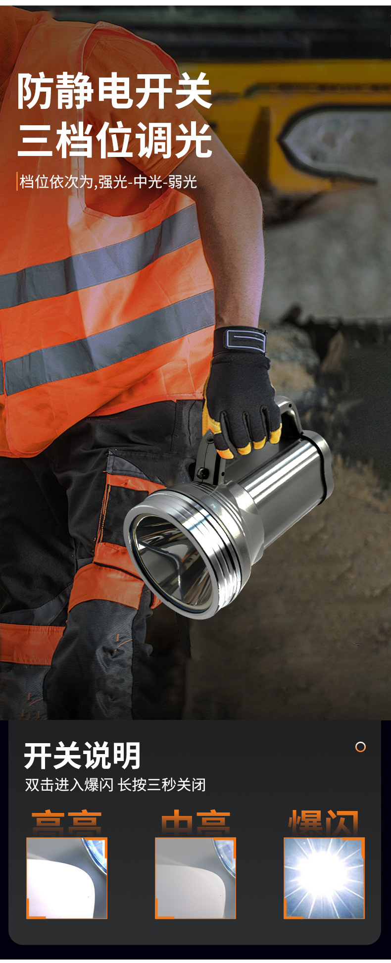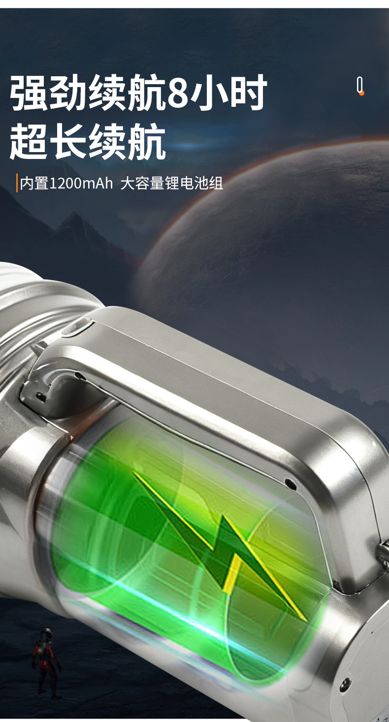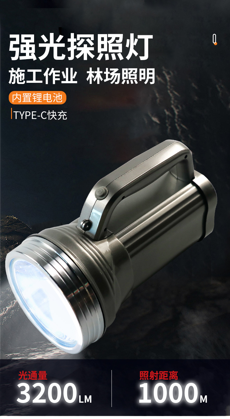 跨境现货手提式电筒户外便携矿灯野营应急锂电强光巡逻钓鱼探照灯
