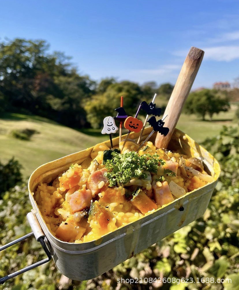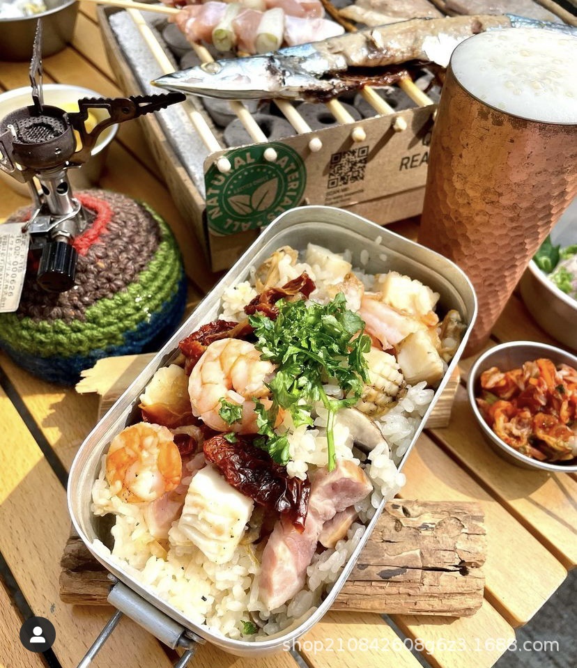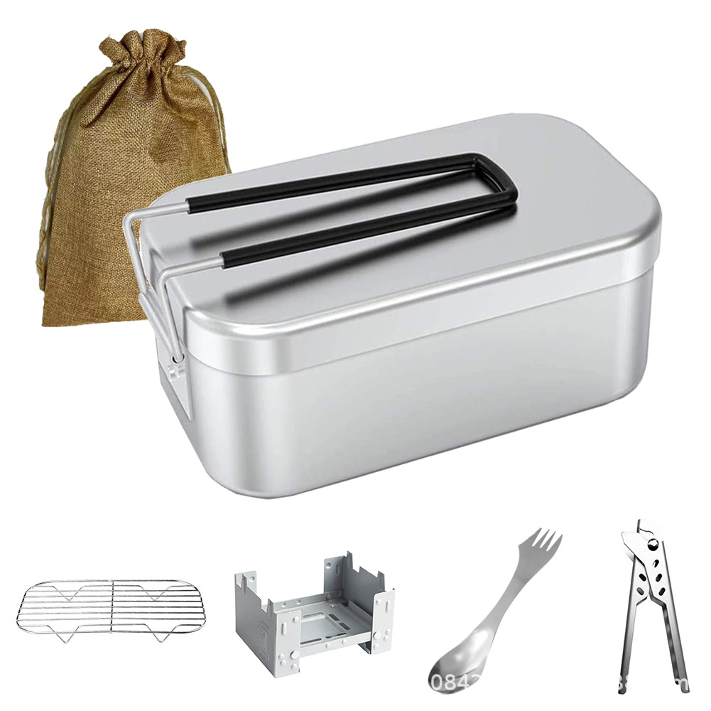 日式户外铝制餐具轻便煮饭可折叠多功能露营烧烤便当盒饭盒