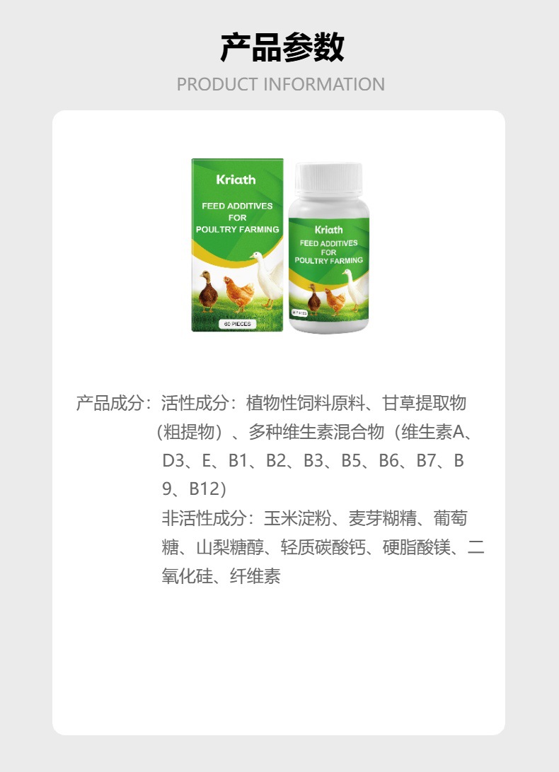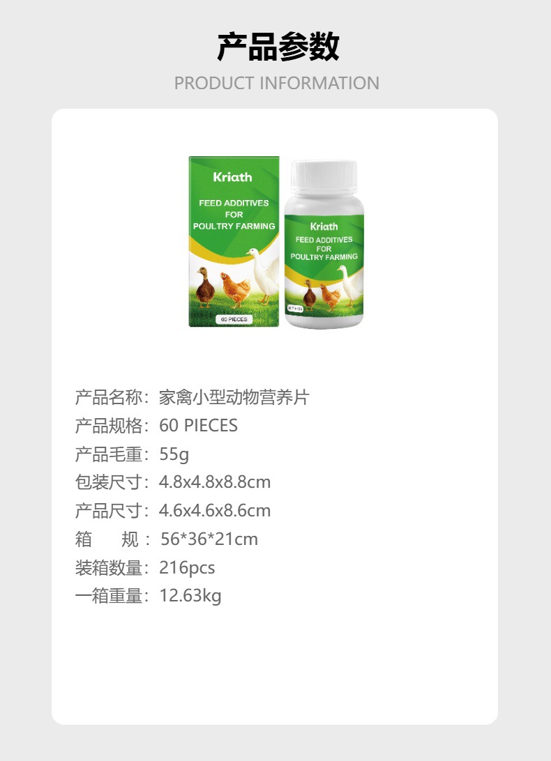 Kriath 家禽小型动物营养片 温和配方补充维生素适口性日常喂养