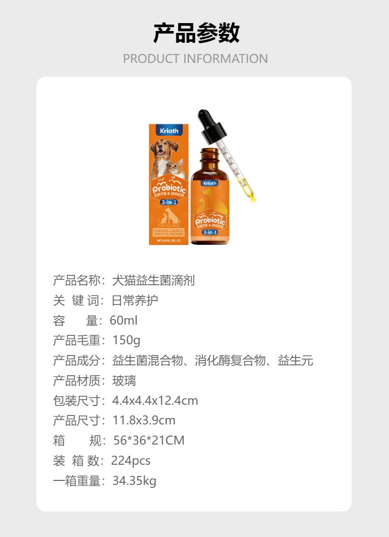 Kriath 犬猫益生菌滴剂 草本配方温和护理滋养呵护宠物营养滴剂