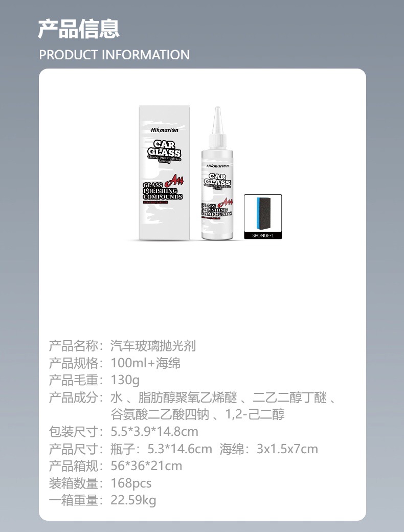 Hikmarion 汽车玻璃抛光剂 温和去渍清洁保护玻璃养护洁净清洗剂
