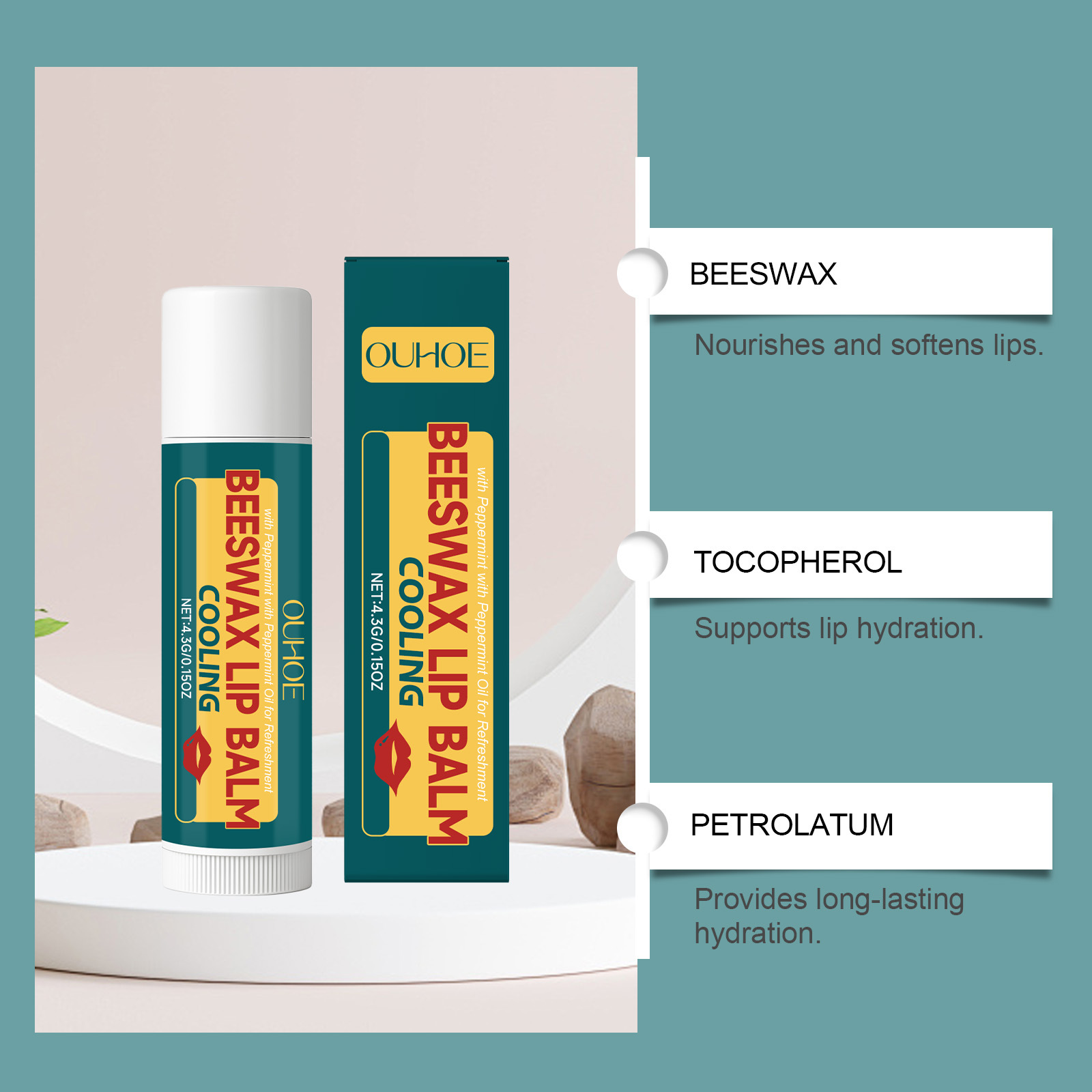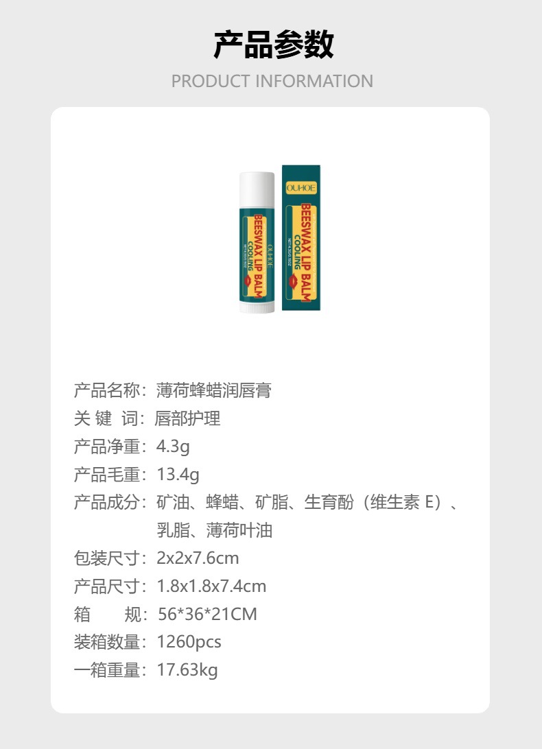 OUHOE薄荷蜂蜡润唇膏 补水保湿滋润柔嫩丰盈唇纹日常护理润唇膏