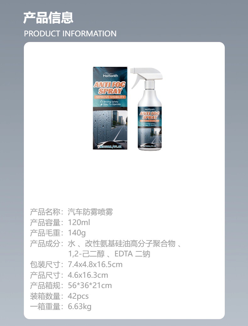 HOMONTH 汽车防雾喷雾 汽车挡风玻璃提升视野清晰驾驶防雾喷剂