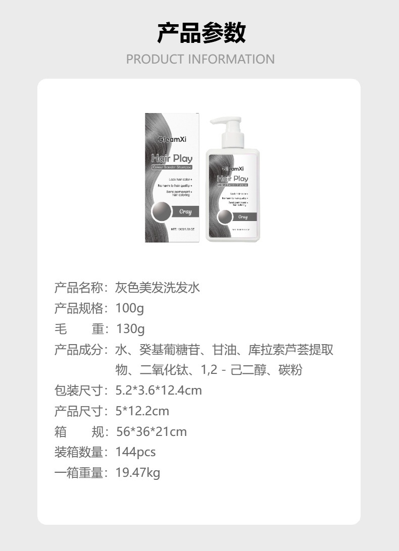 GleamXi灰色美发洗发水 锁色滋润柔顺发丝轻盈均匀上色时尚潮流