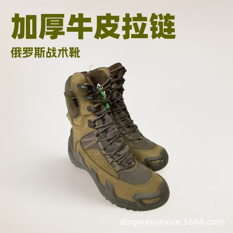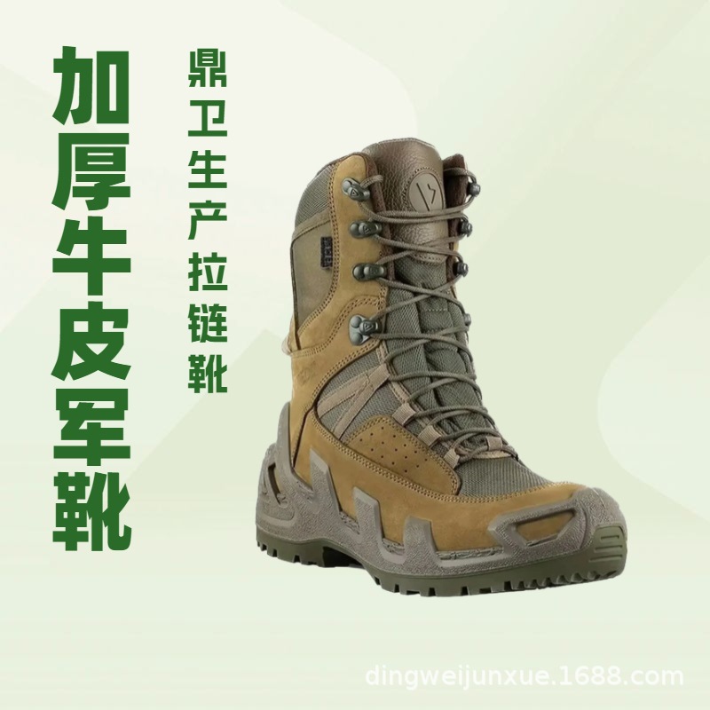 加厚牛皮沙漠靴 耐磨防滑鞋 广州户外工厂生产一体成型拉链作战靴