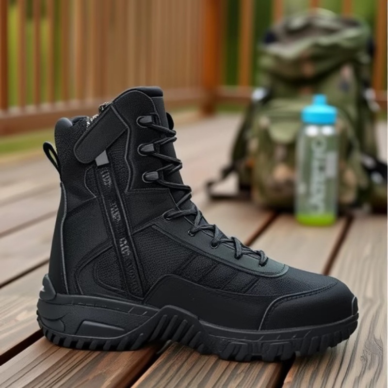 VANEDA军靴以透气、防滑、减震为核心功能,内垫采用网布海玻丽材料(吸汗抗菌),大底为聚氨酯树脂(耐磨防滑),适合户外工作及军事场景147。其设计符合人体工学,鞋植采用第五代8005型号贴合脚型17。