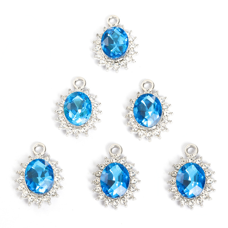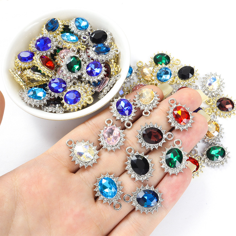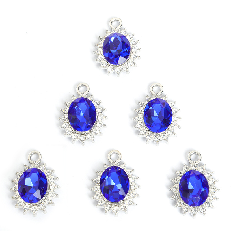 时尚椭圆水晶镶钻合金吊坠 几何DIY饰品百搭配件手链项链耳环配饰