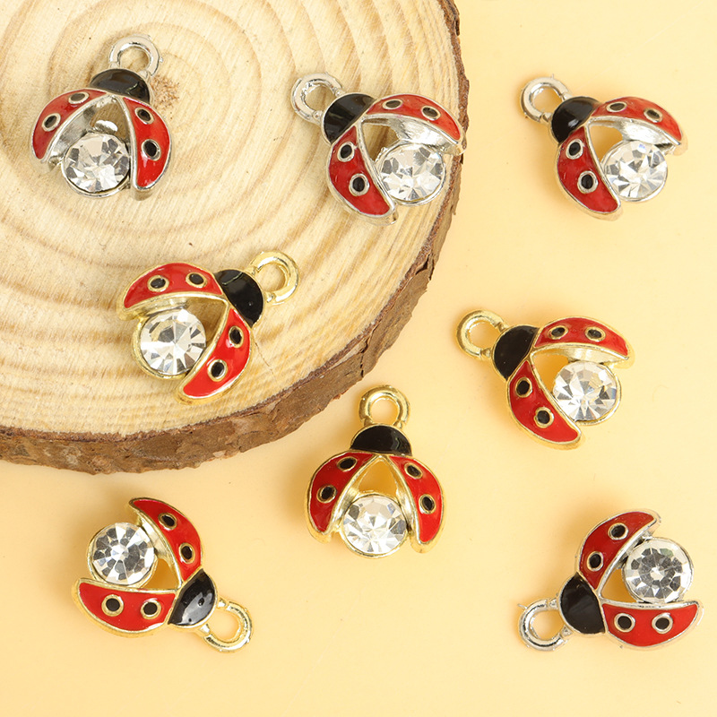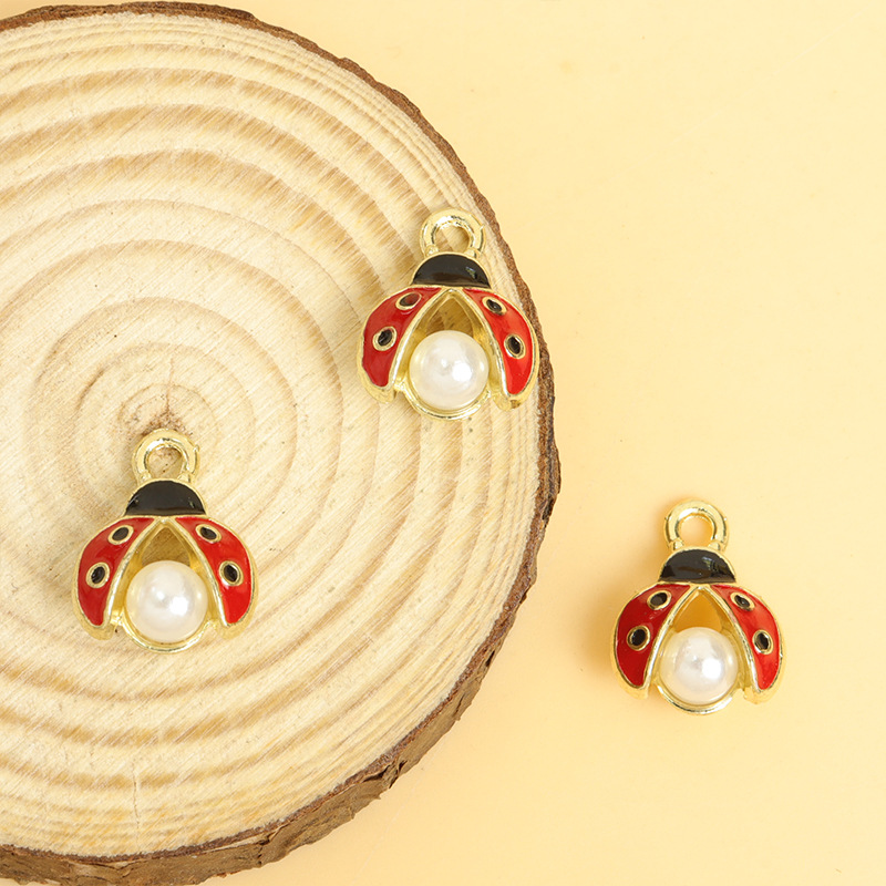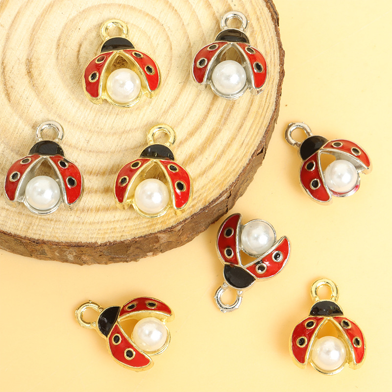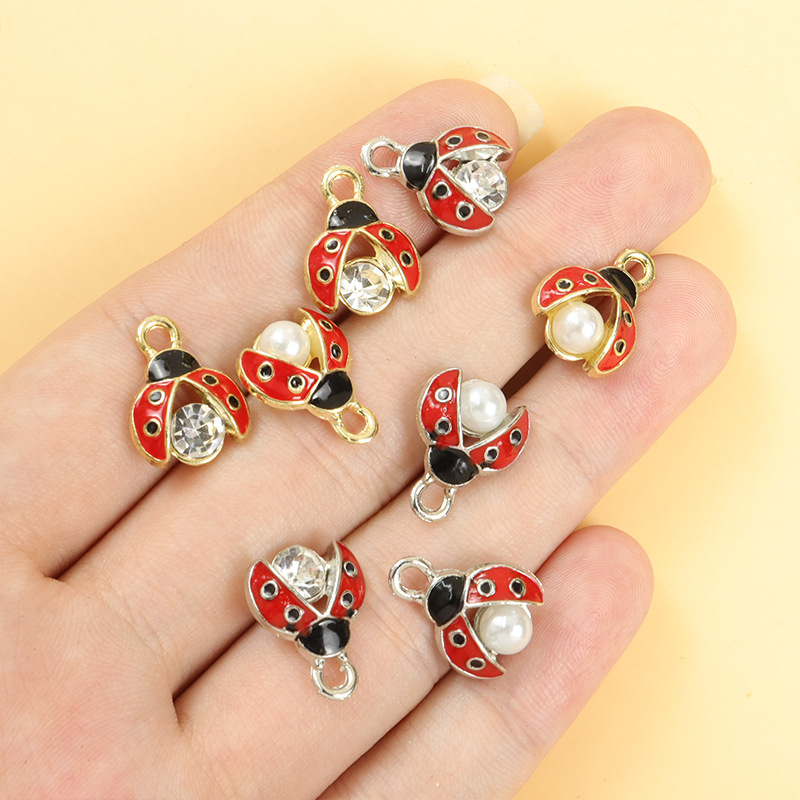滴油珍珠镶钻瓢虫合金吊坠动物DIY饰品百搭配件手链耳环跨境热销