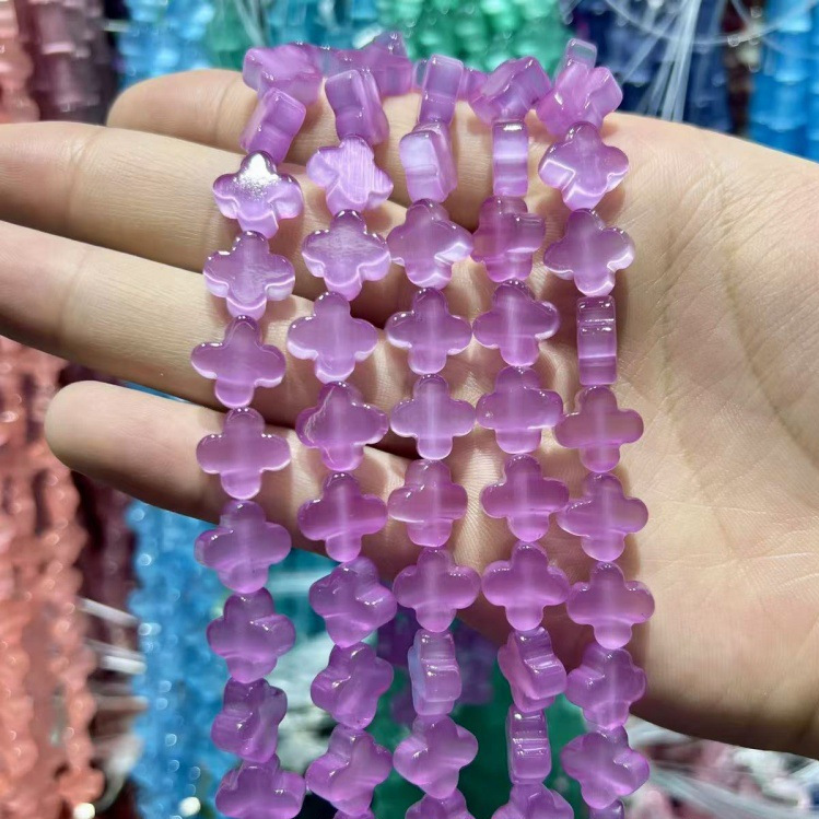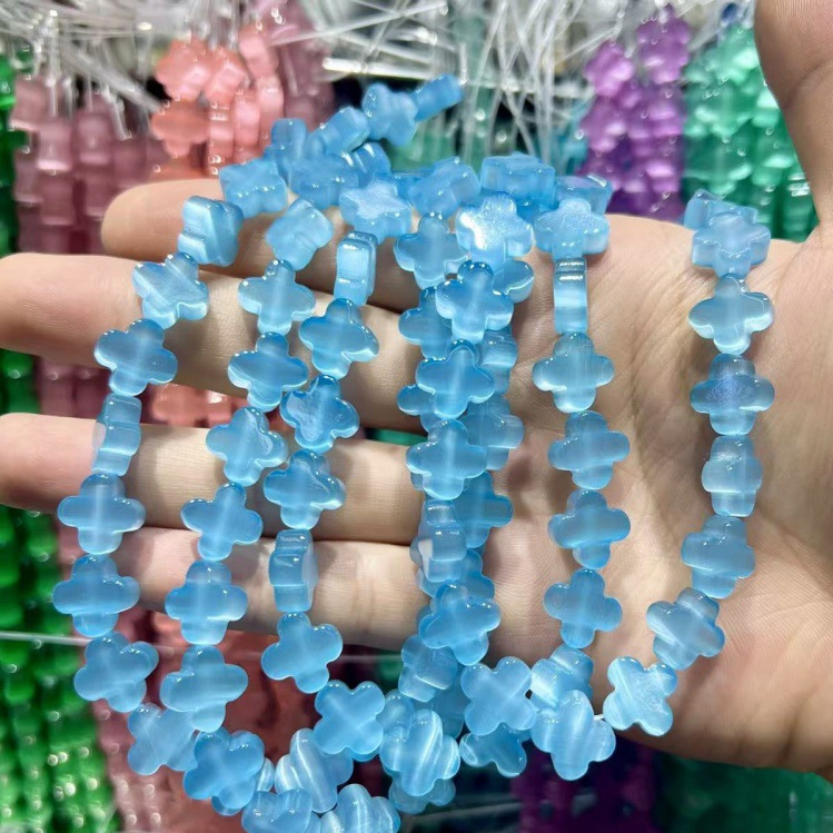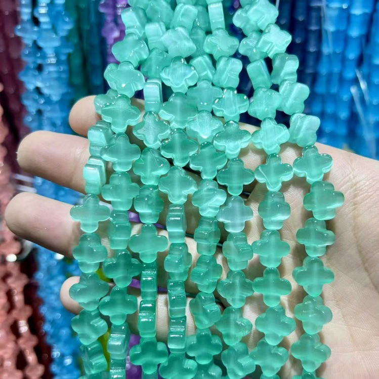 马卡龙色猫眼石散珠四叶草猫眼珠DIY手链项链配件饰品diy材料批发
