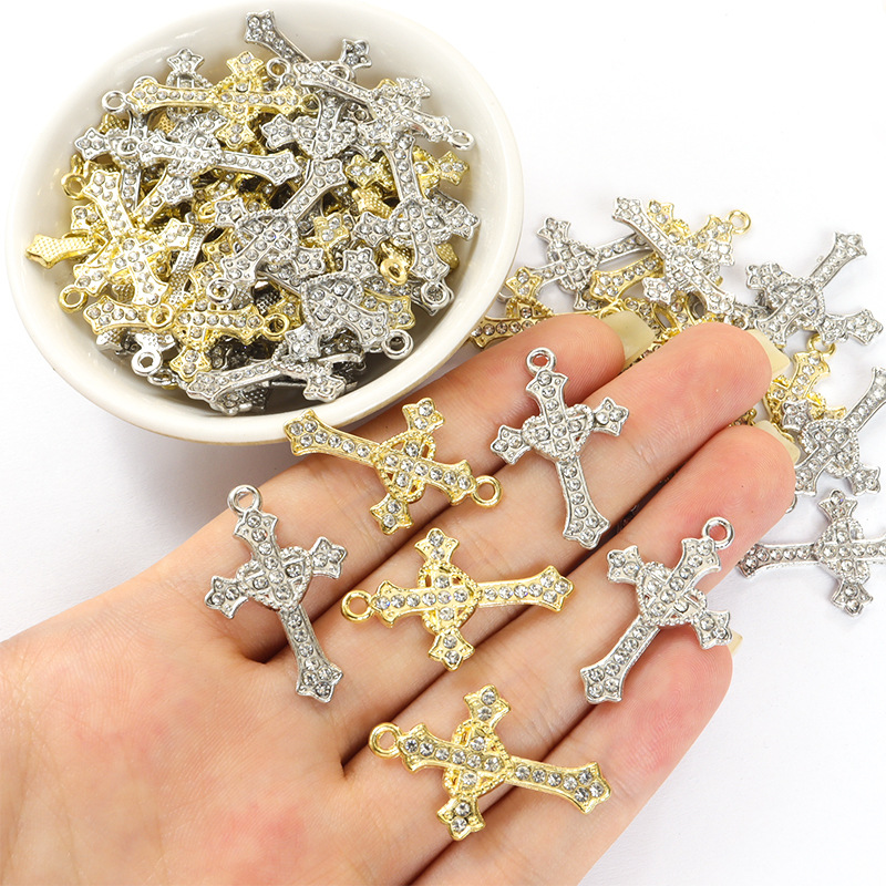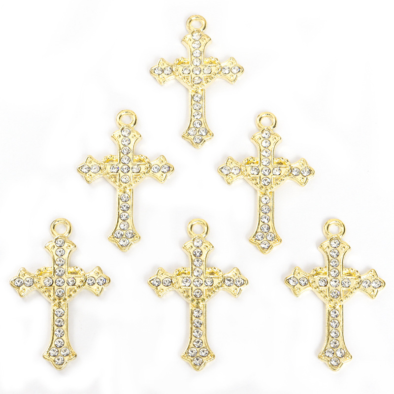 时尚爱心十字架镶钻合金吊坠 宗教DIY饰品百搭配件手链项链耳环小