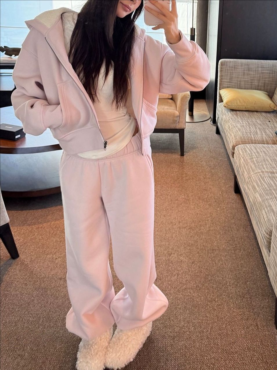 SUNONEOE11.10 20:00少女心炸裂 粉色高克重460g卫衣套装