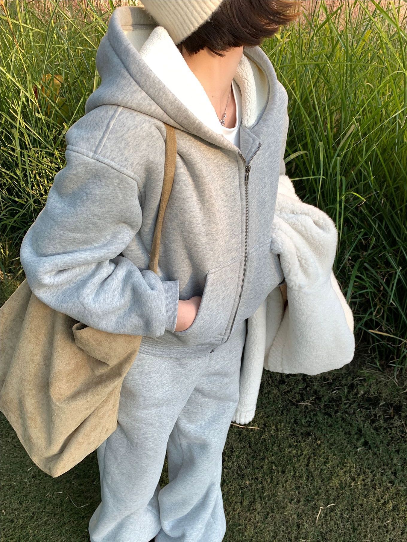 - 颜色:浅灰色套装