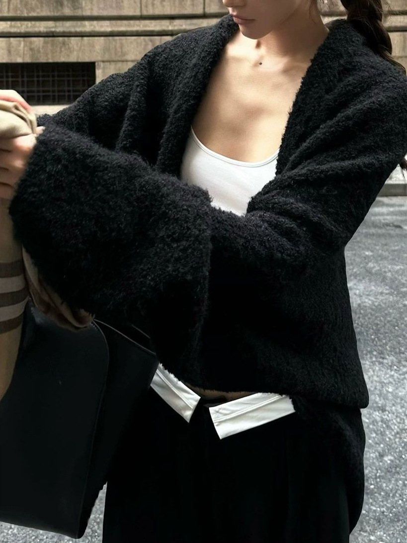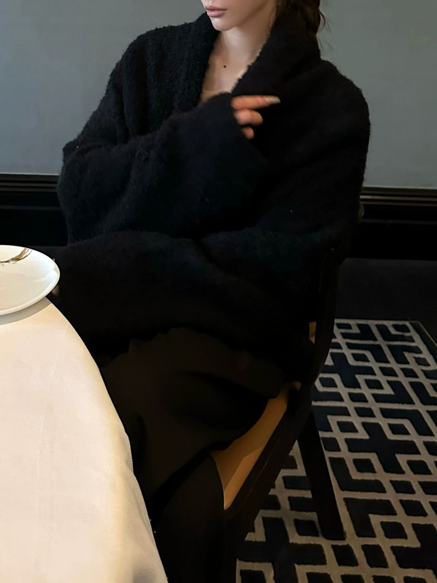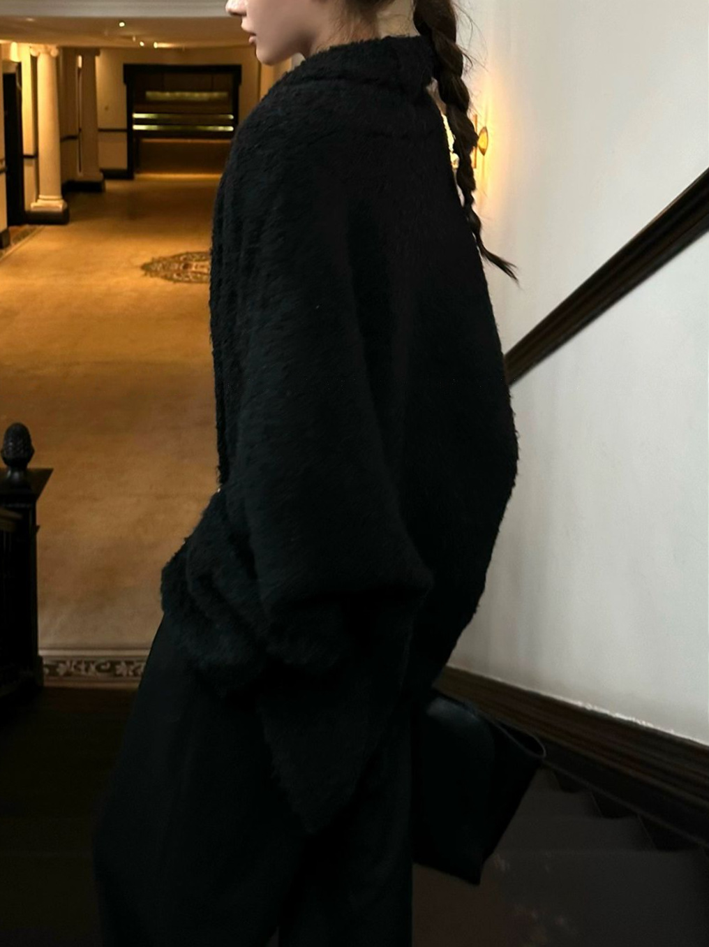 0122stepl 云朵圈圈纱黑色蝙蝠袖毛衣 女软糯慵懒风宽松开衫外套