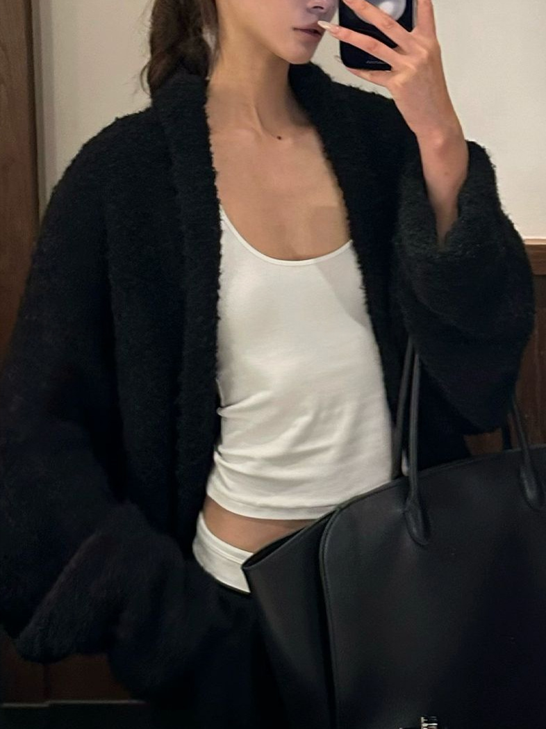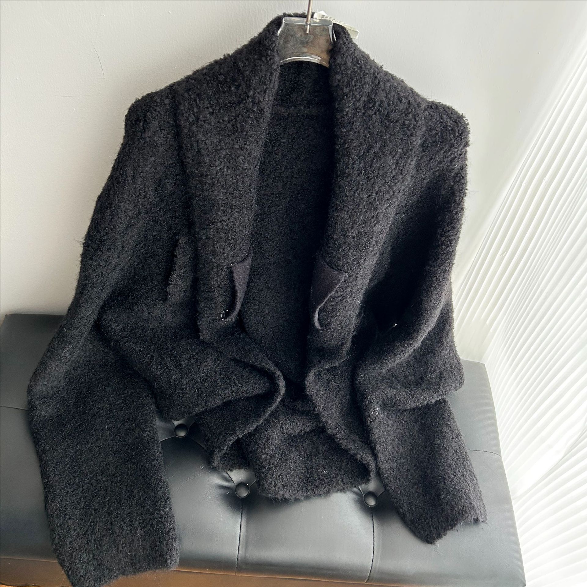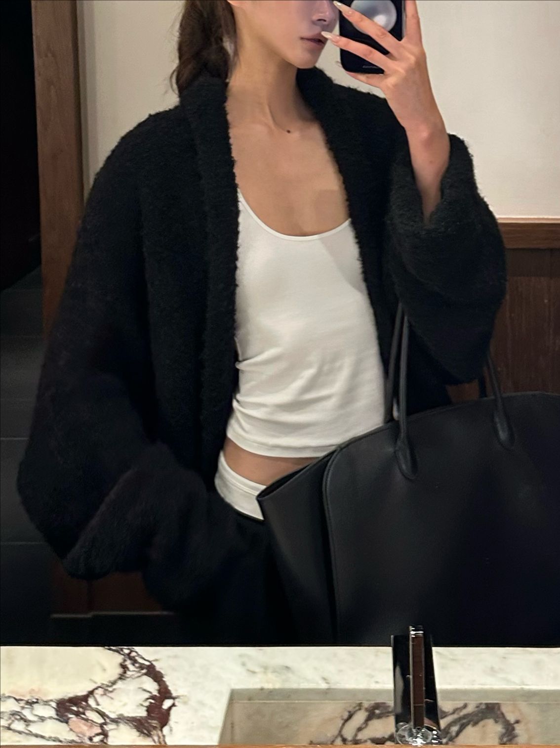 0122stepl 云朵圈圈纱黑色蝙蝠袖毛衣 女软糯慵懒风宽松开衫外套