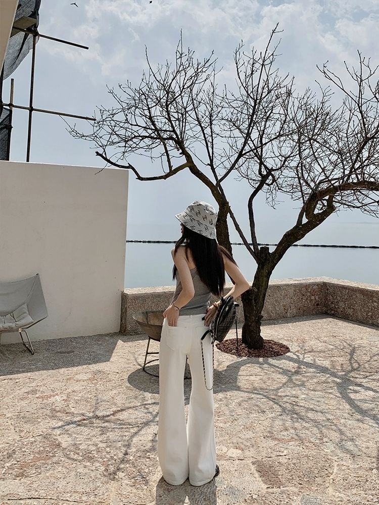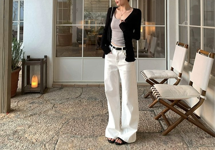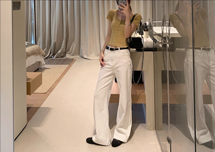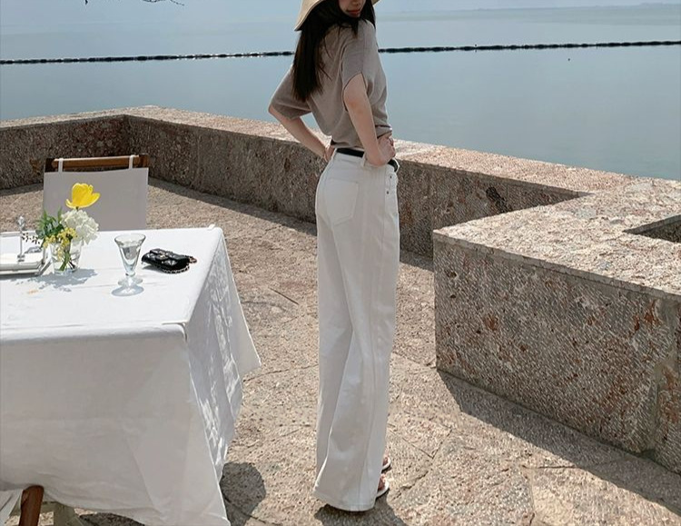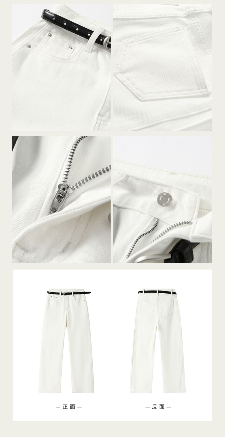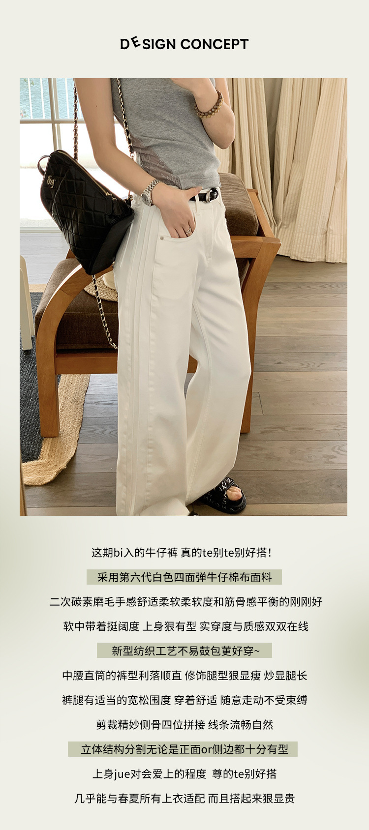 黑豆~~ 偏爱Vibe*分割线白色牛仔裤女夏中腰直筒裤百搭阔腿裤子