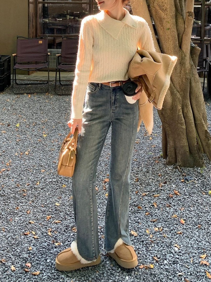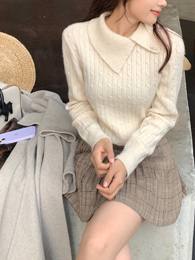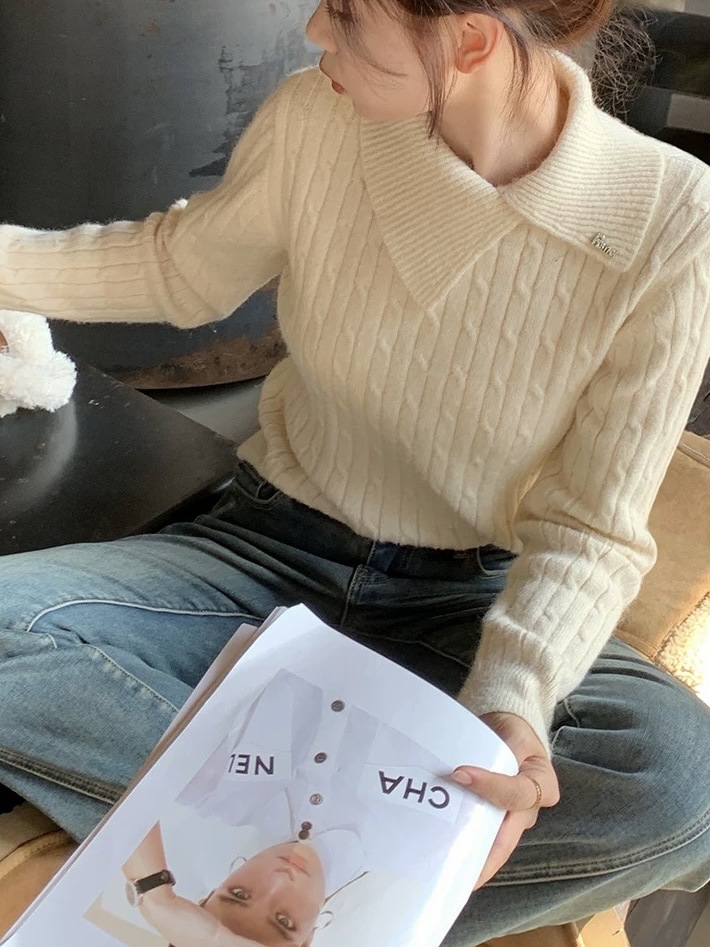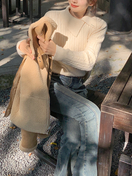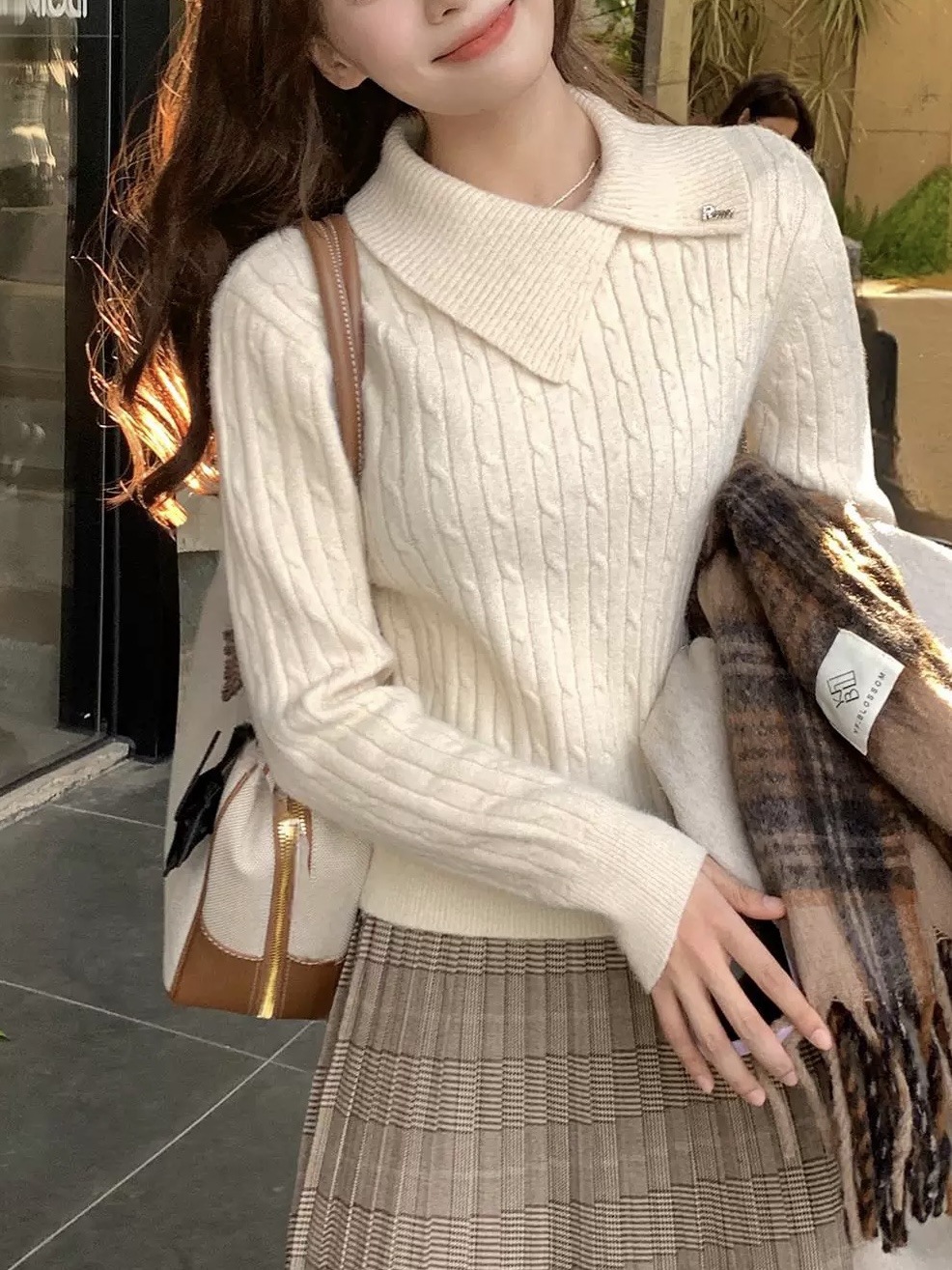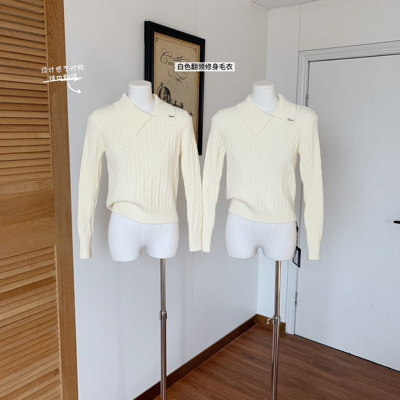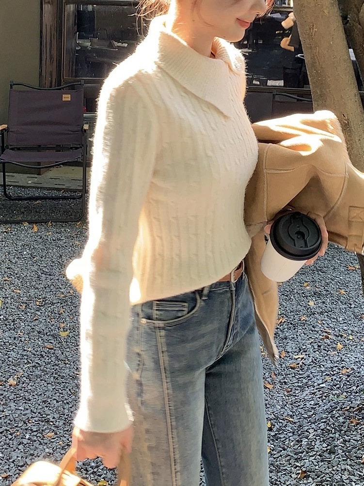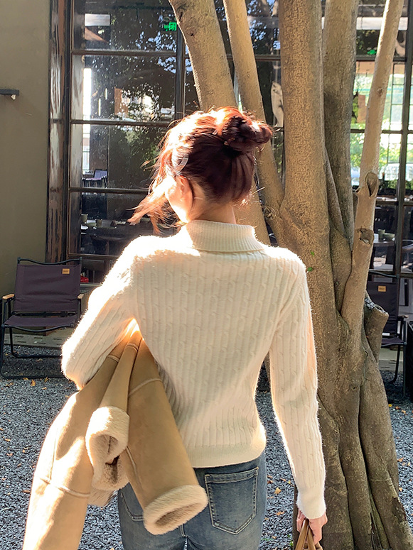切糕自制小个子秋冬冬季上衣女内搭白色翻领毛衣外套修身针织衫