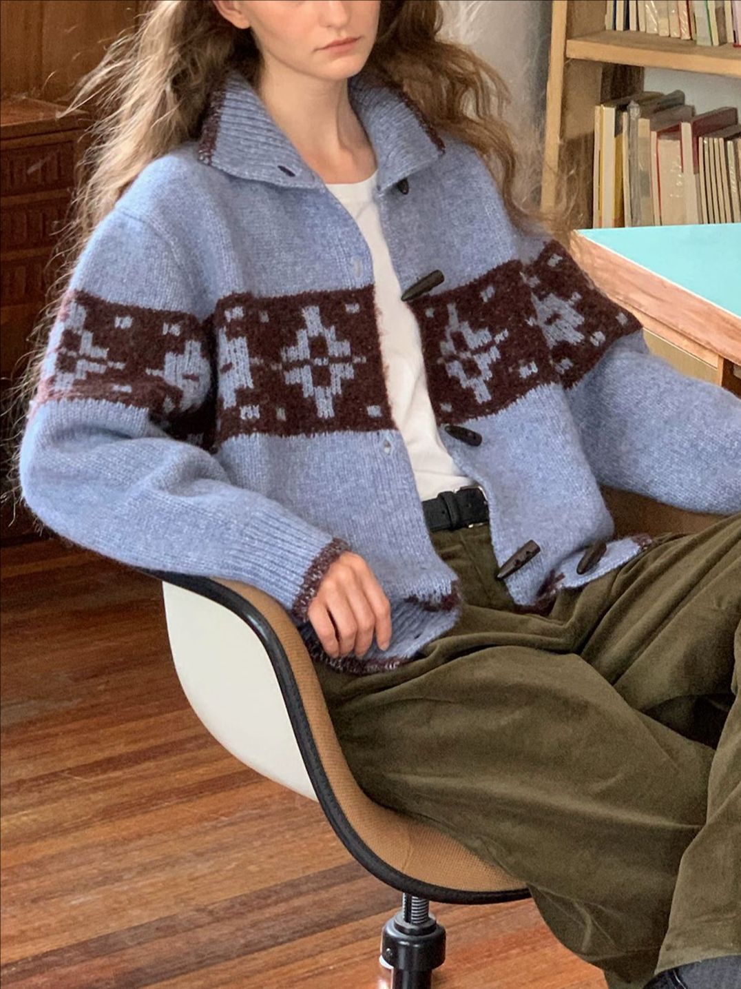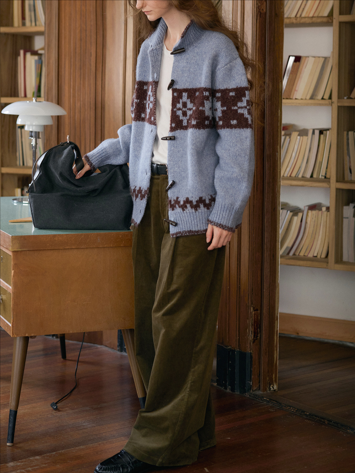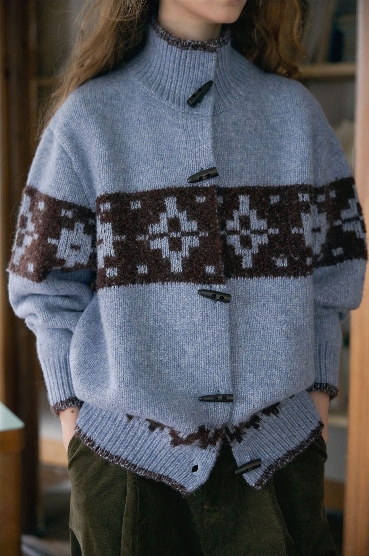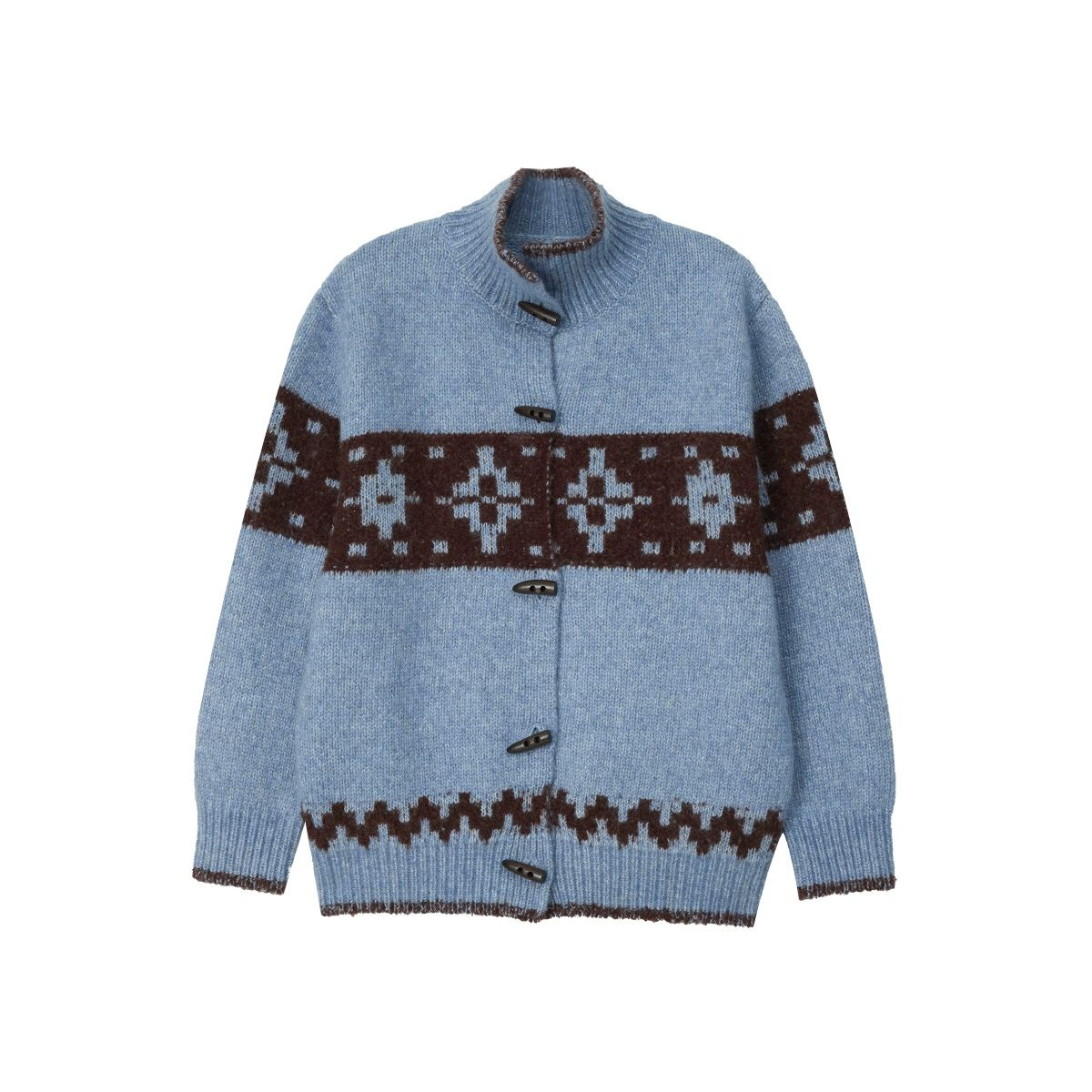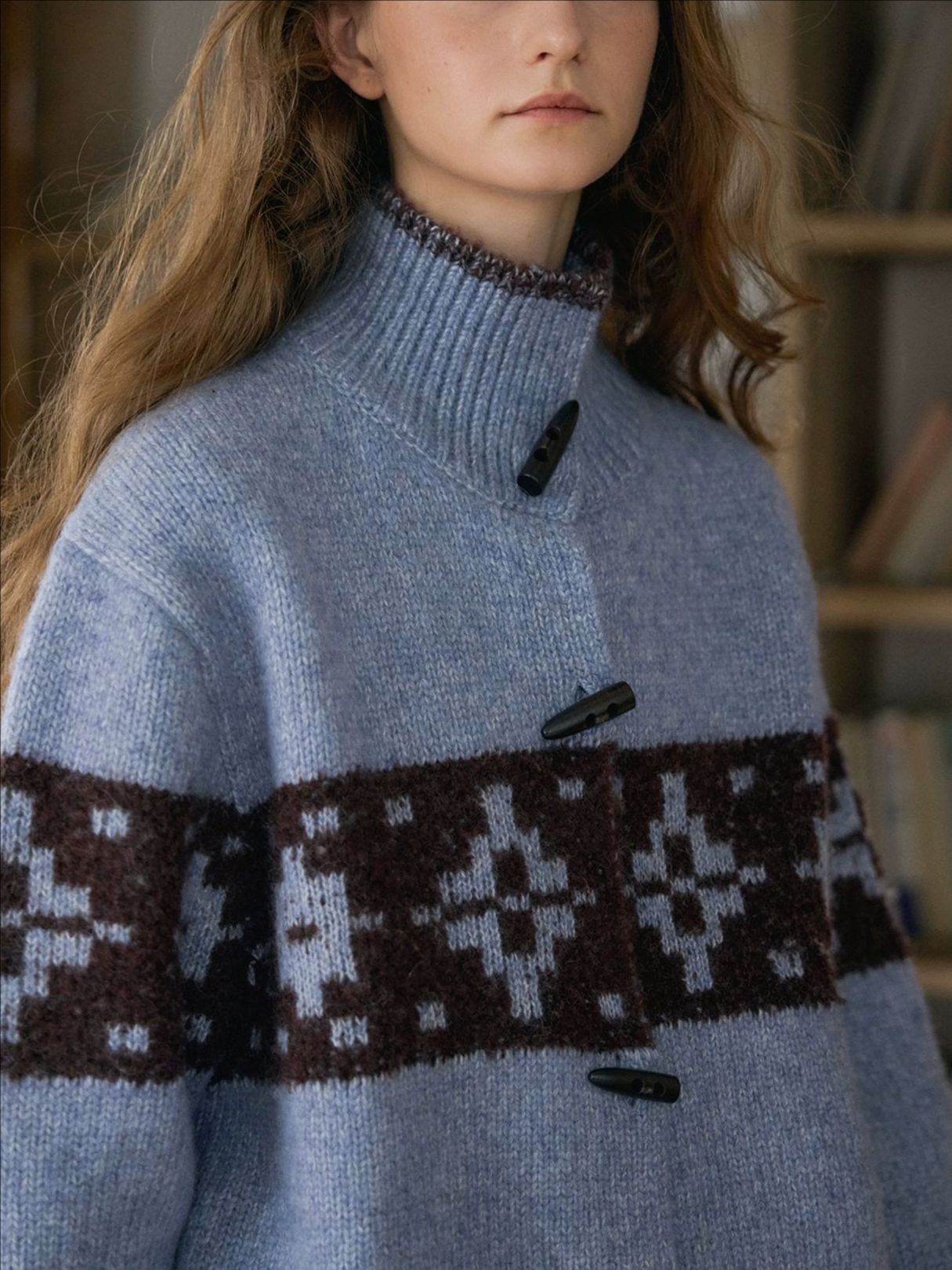 2025AW 立体图腾提花小高领羊角扣毛衣开衫