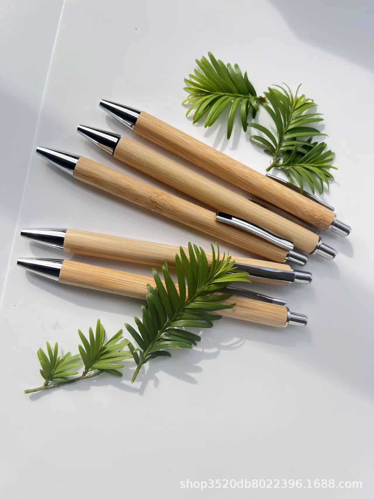创意按动竹子笔批发商务礼品竹木圆珠笔可激光LOGO现货竹子圆珠笔