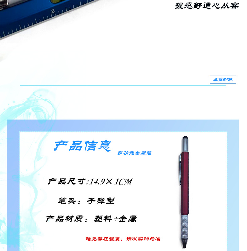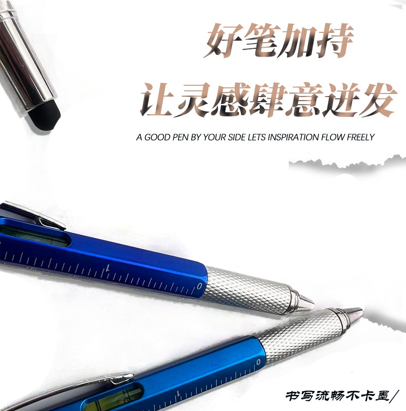 户外多功能工具笔 水平仪刻度尺触屏笔 装修木工组装家具装修圆珠