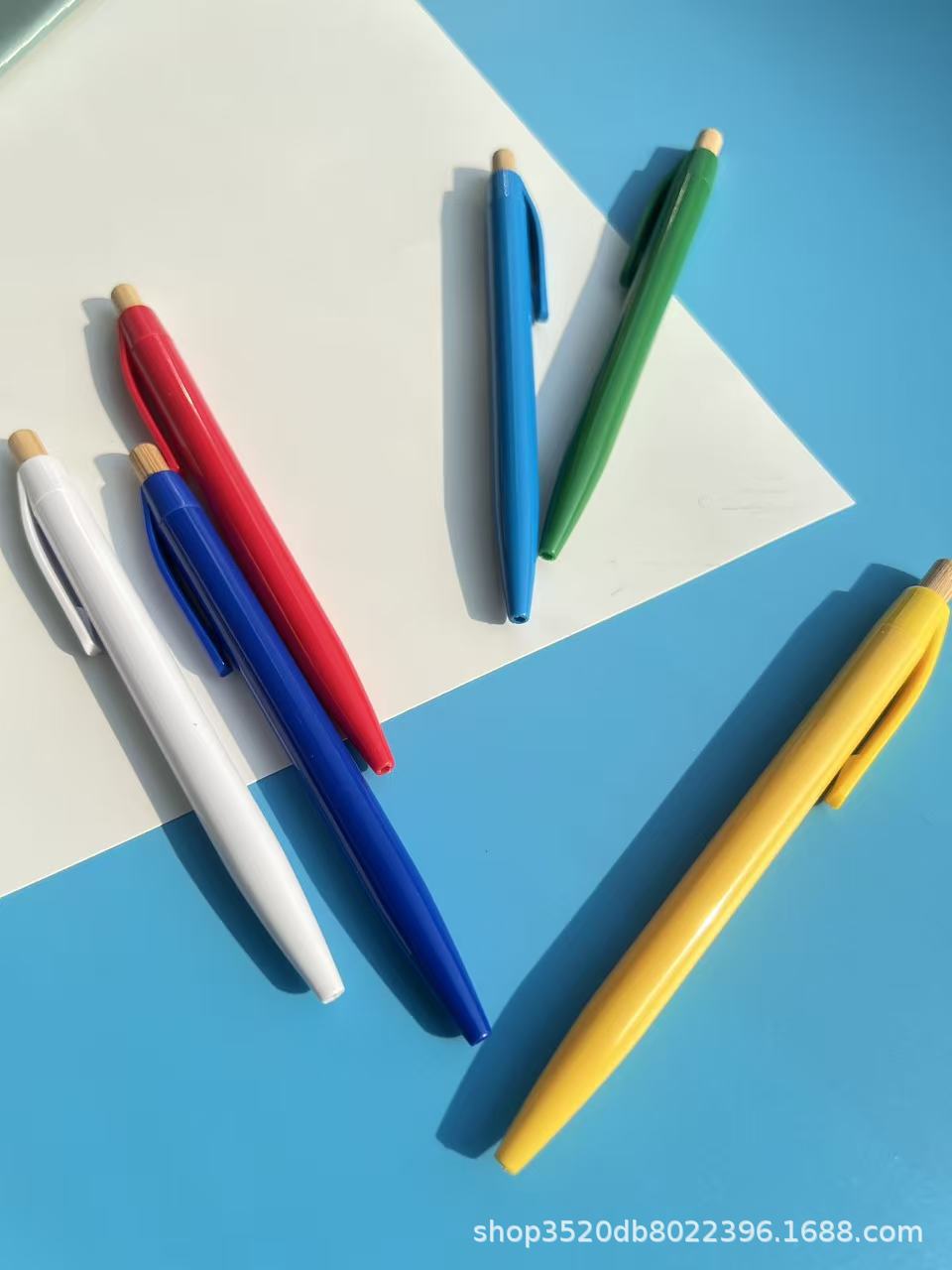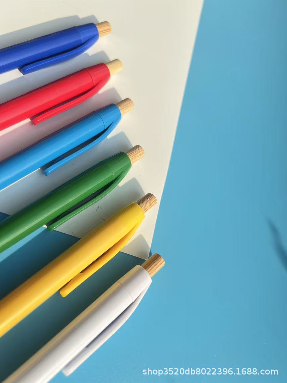 竹头纯色按动圆珠笔竹木冒头材质写字笔礼品笔厂家批发中性笔笔杆
