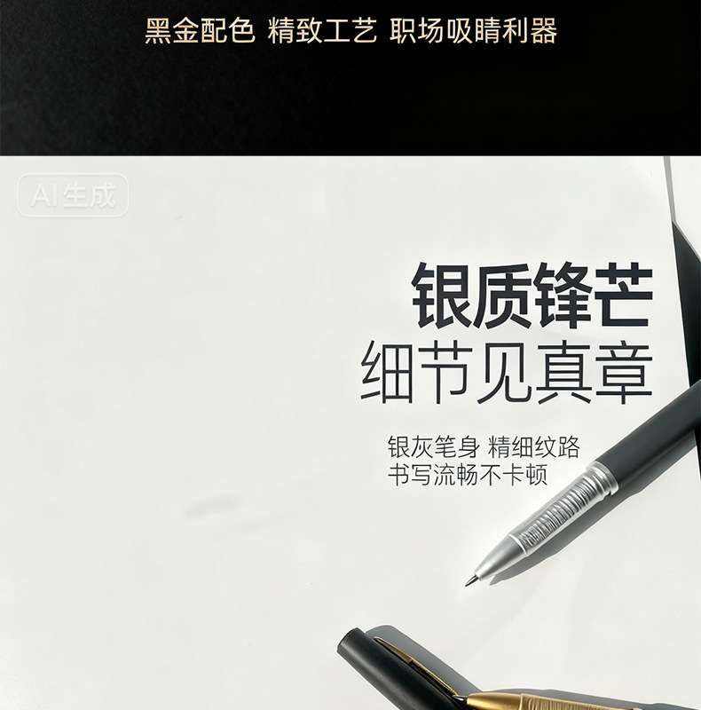 酒店商务签字笔广告笔中性笔学生刷题笔金属挂钩加粗办公签字笔