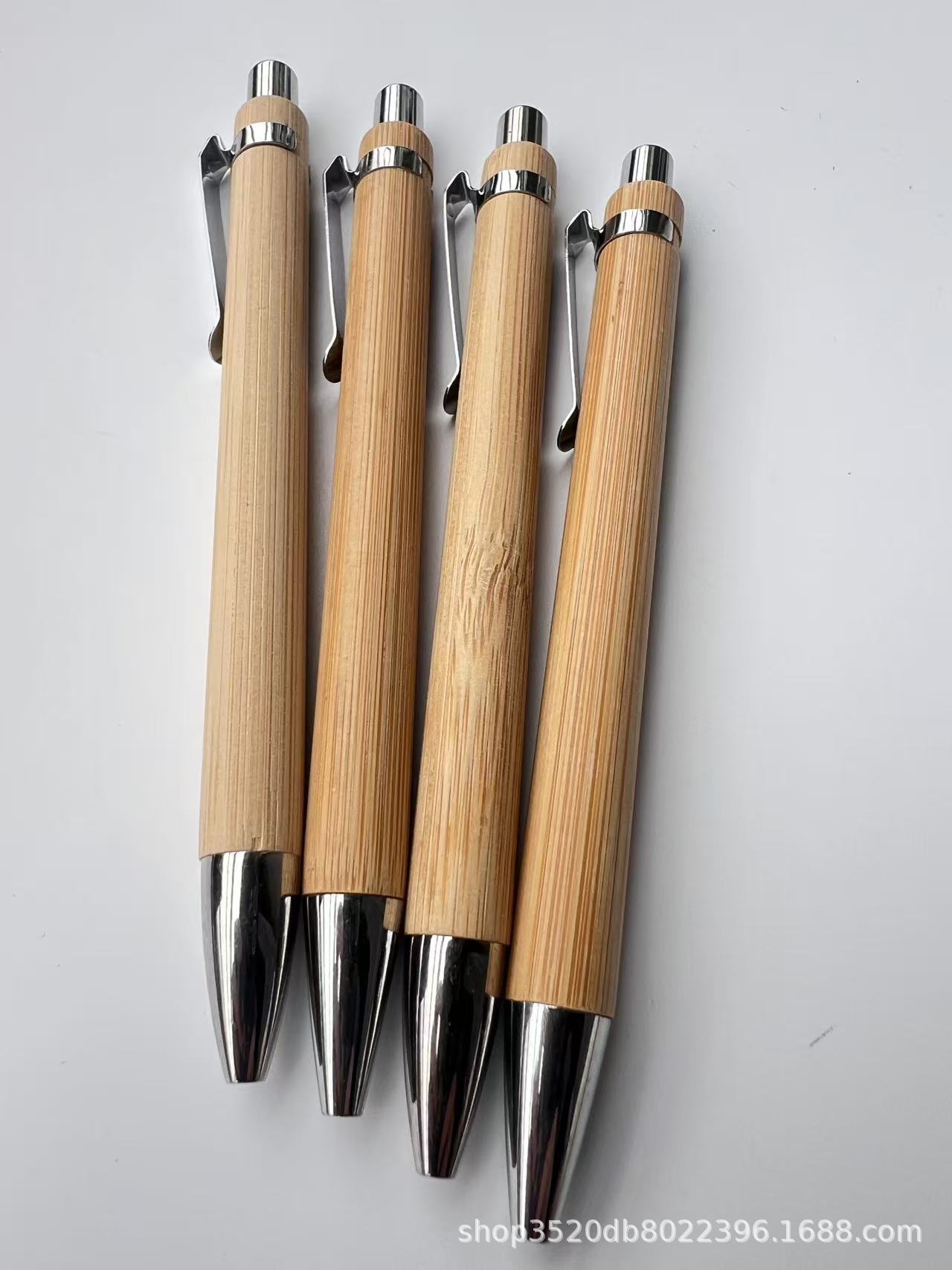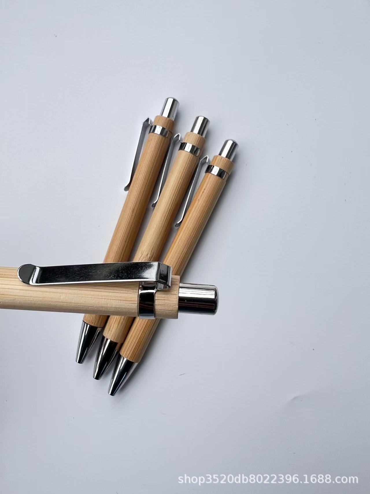 创意按动笔圆珠笔环保竹子笔可刻字广告礼品笔铁挂钩