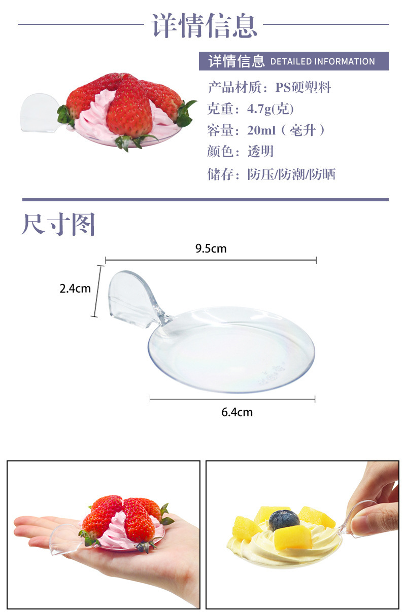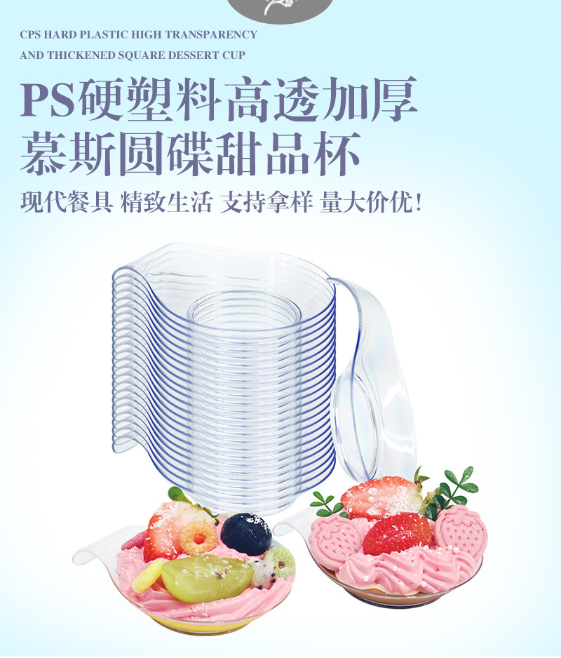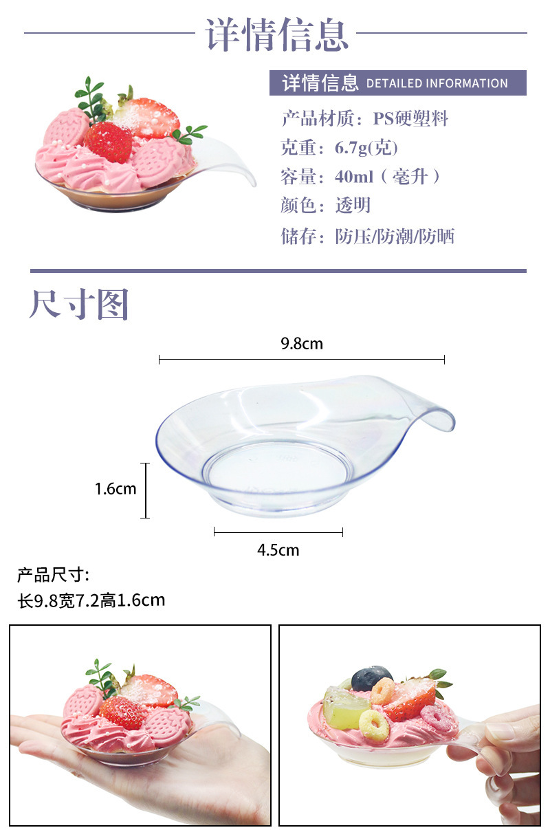 一次性塑料水滴勺酱料甜点迷你硬塑加厚PS明苯碟外贸跨境爆款现货
