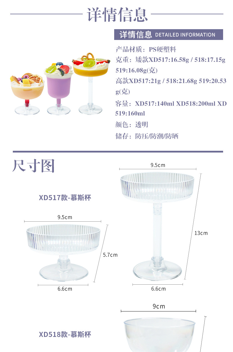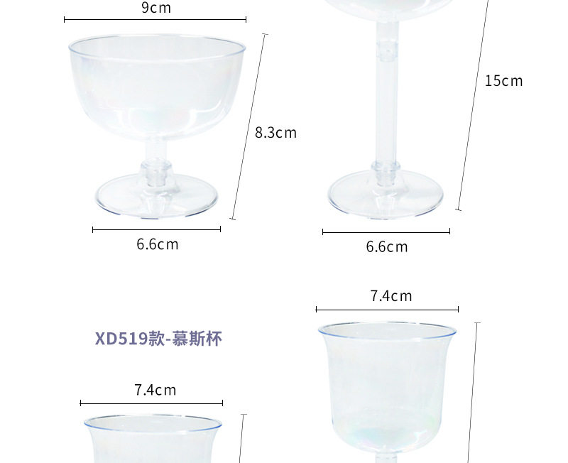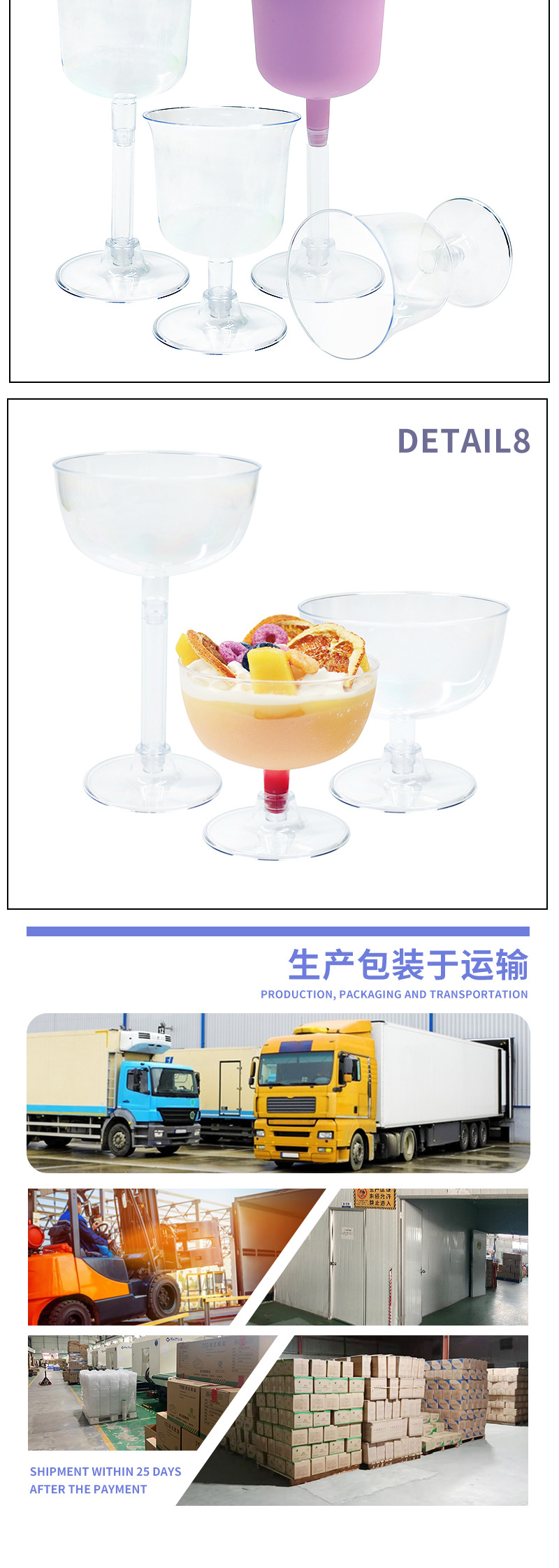 工厂批发塑料鸡尾酒杯香槟杯甜品杯婚礼派对专用一次性塑料高脚杯