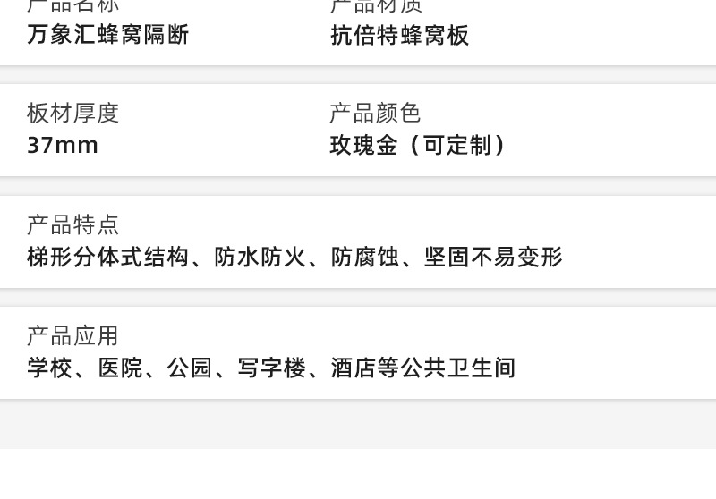 五金产品 卫生间隔断厕所隔断抗倍特板铝蜂窝复合板隔断抗倍特挂墙