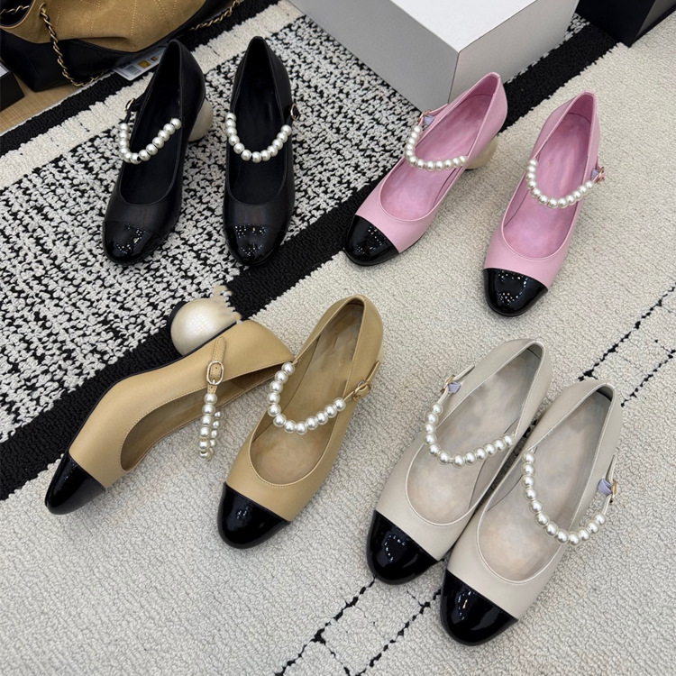 高端品质2026新款时髦真皮珍珠玛丽珍鞋女百搭一字扣带浅口单鞋