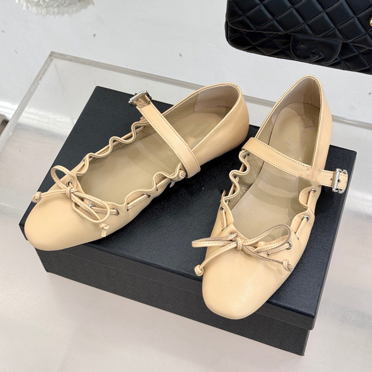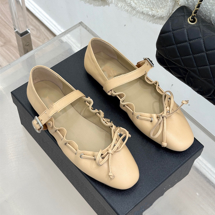 高端品质小香风平底鞋浅口百搭真皮软羊皮一字扣单鞋女款2026新款