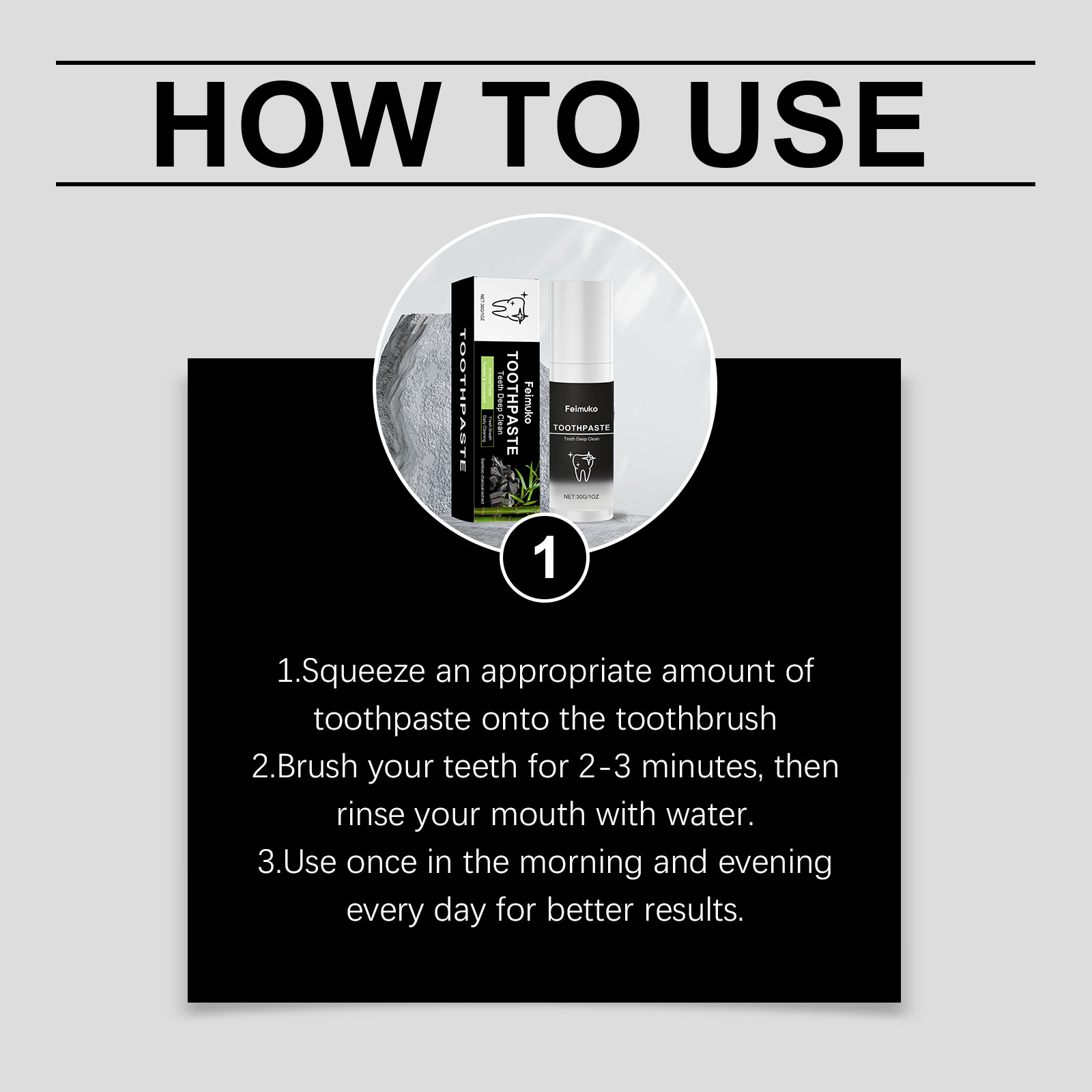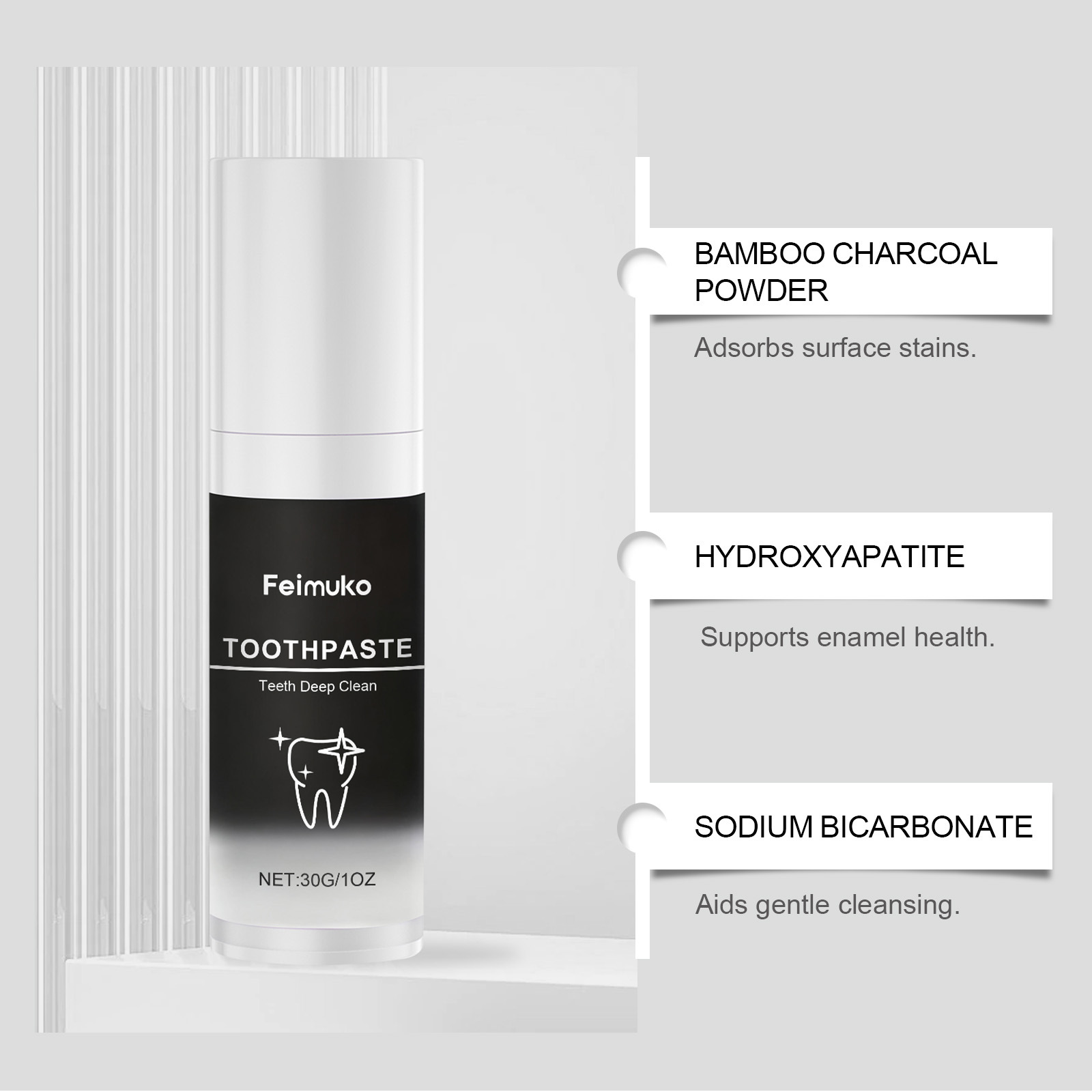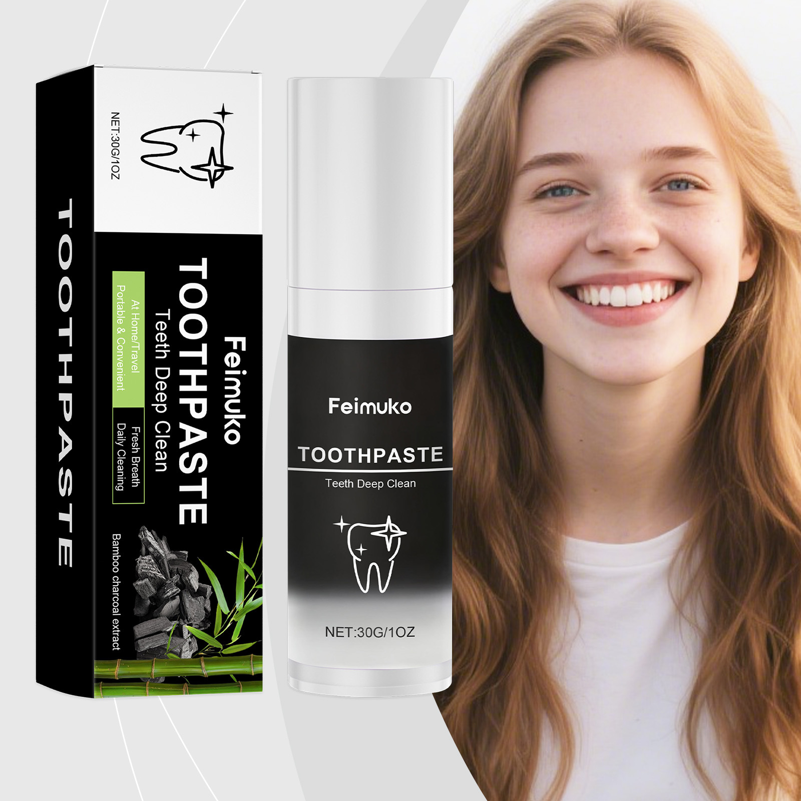 Feimuko 竹炭牙膏 温和清洁牙齿薄荷清新洁净亮泽日常护理牙膏