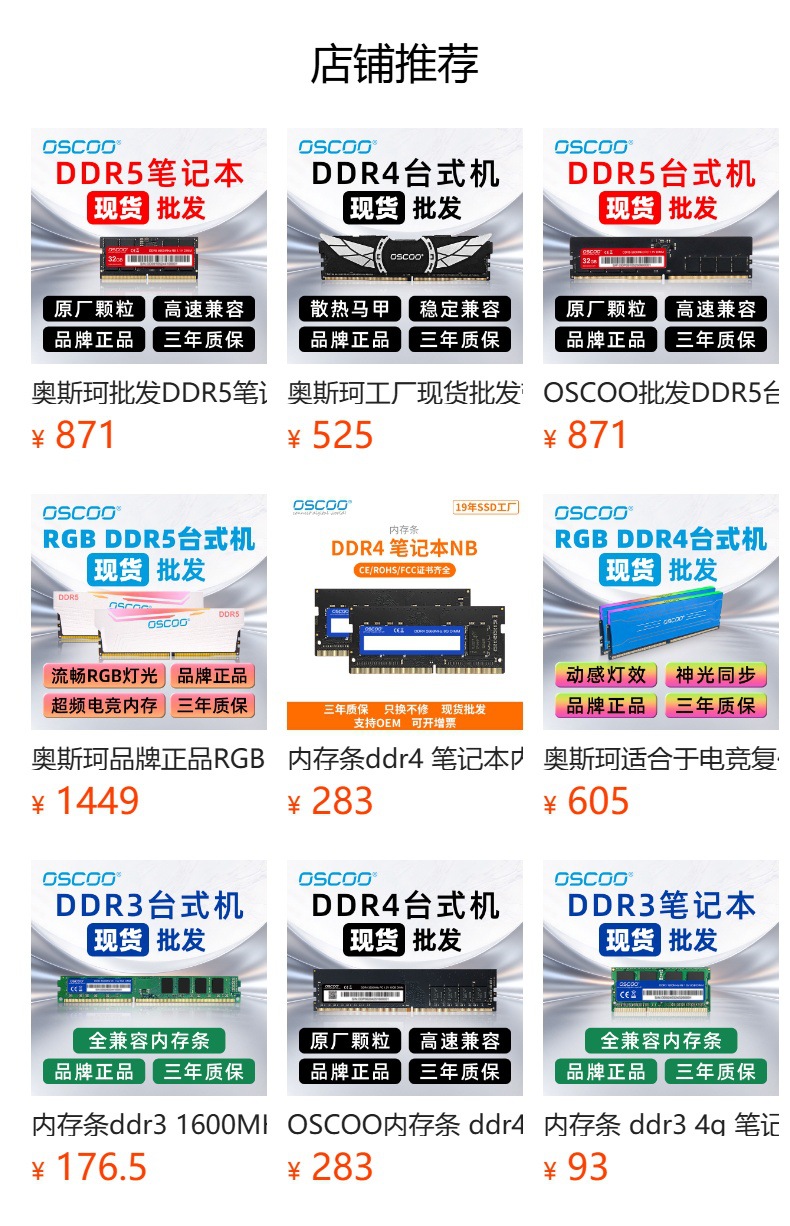 22年内存条工厂现货批发DDR4 笔记本SODIMM 4GB 8GB 16GB 2400MHZ 2666MHZ 3200MHZ OSCOO 品牌正品 官方质保三年