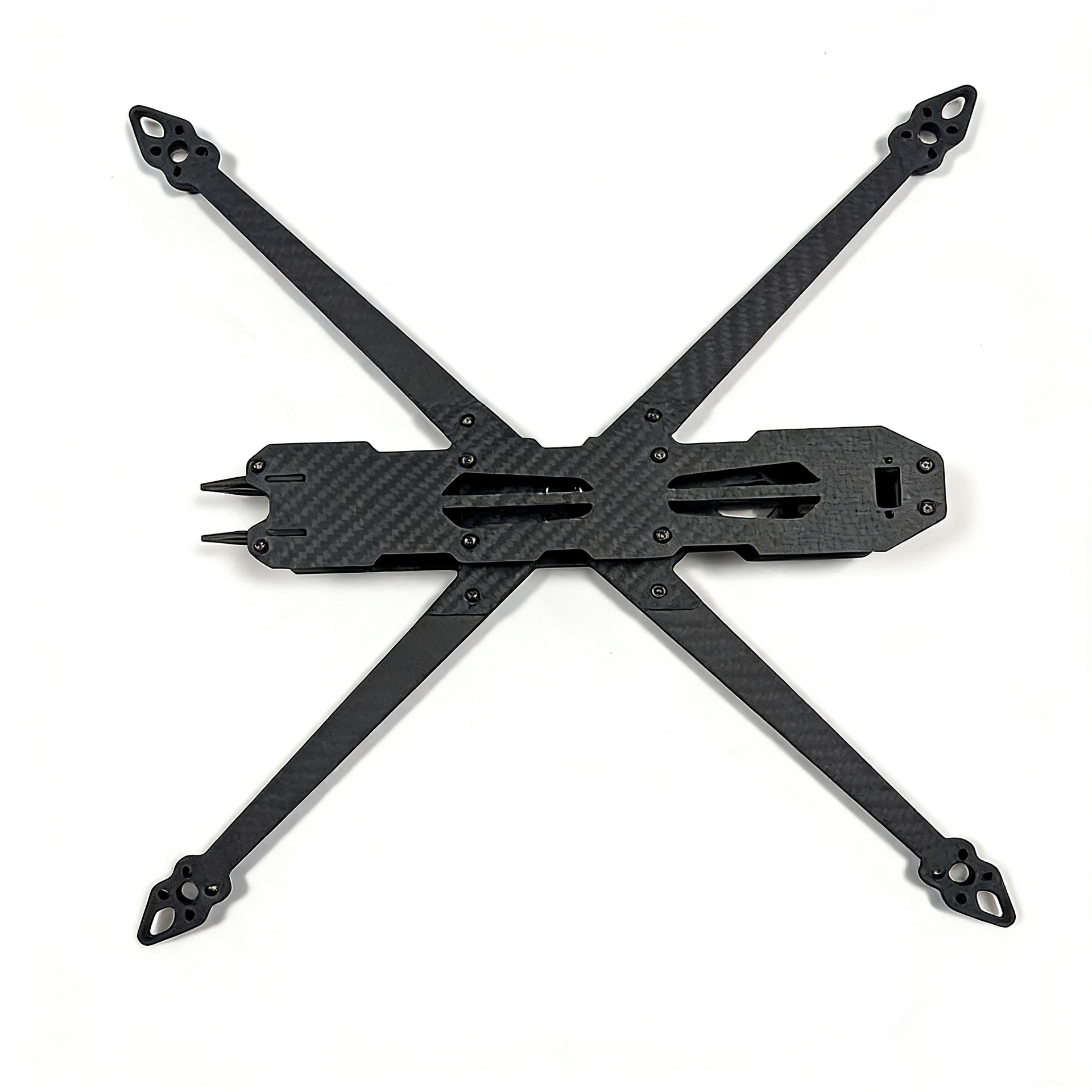 机架中心布局合理,便于安装各类飞控、图传和摄像头组件。