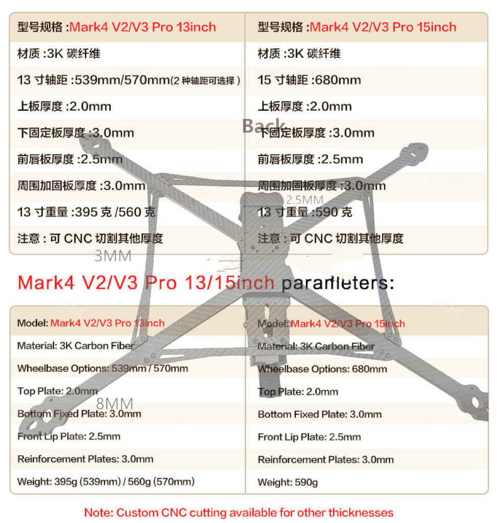 MARK4 10寸V2穿越机FPV13寸无人机碳纤维机架V2 7寸碳纤维机架