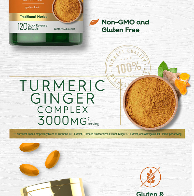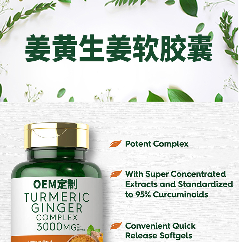 跨境亚马逊热销姜黄生姜软胶囊Turmeric softgel capsules定制OEM