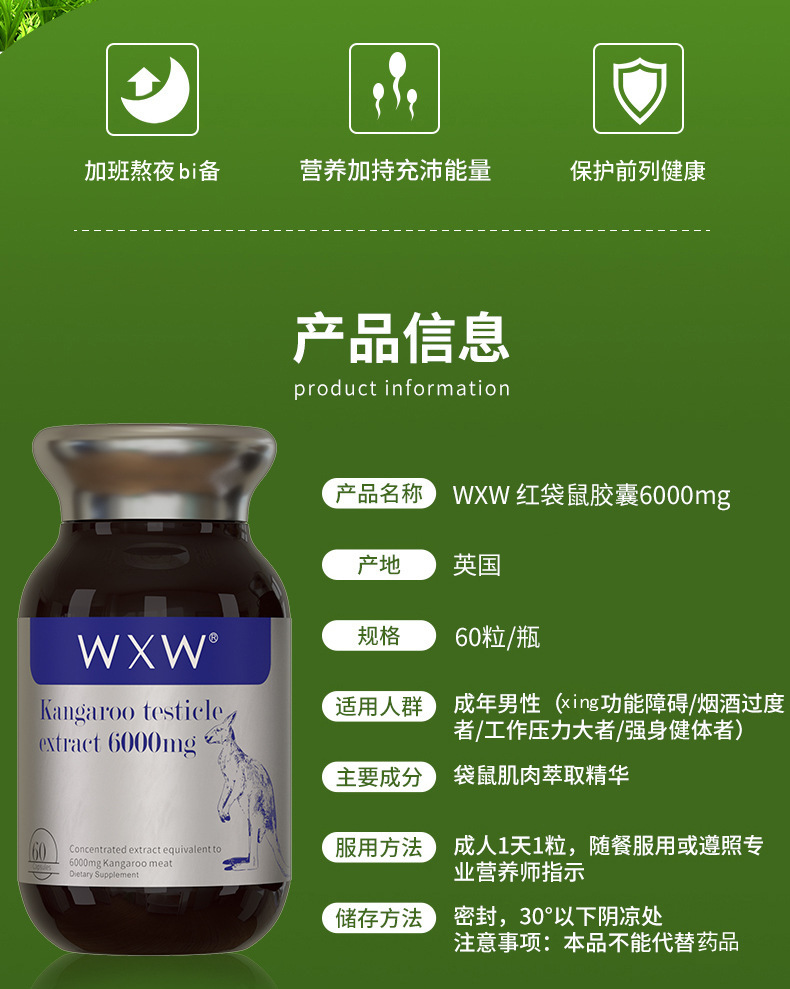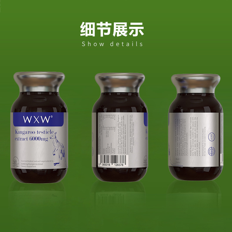 - 包装规格:60粒/瓶红袋鼠精胶囊