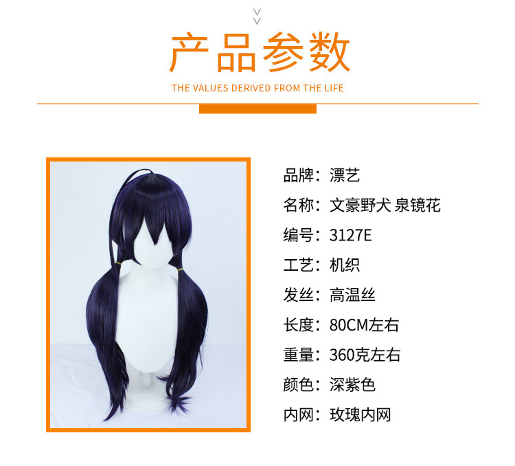 漂艺 文豪野犬cos假发 泉镜花 深紫色 双马尾款送头饰cosplay假发