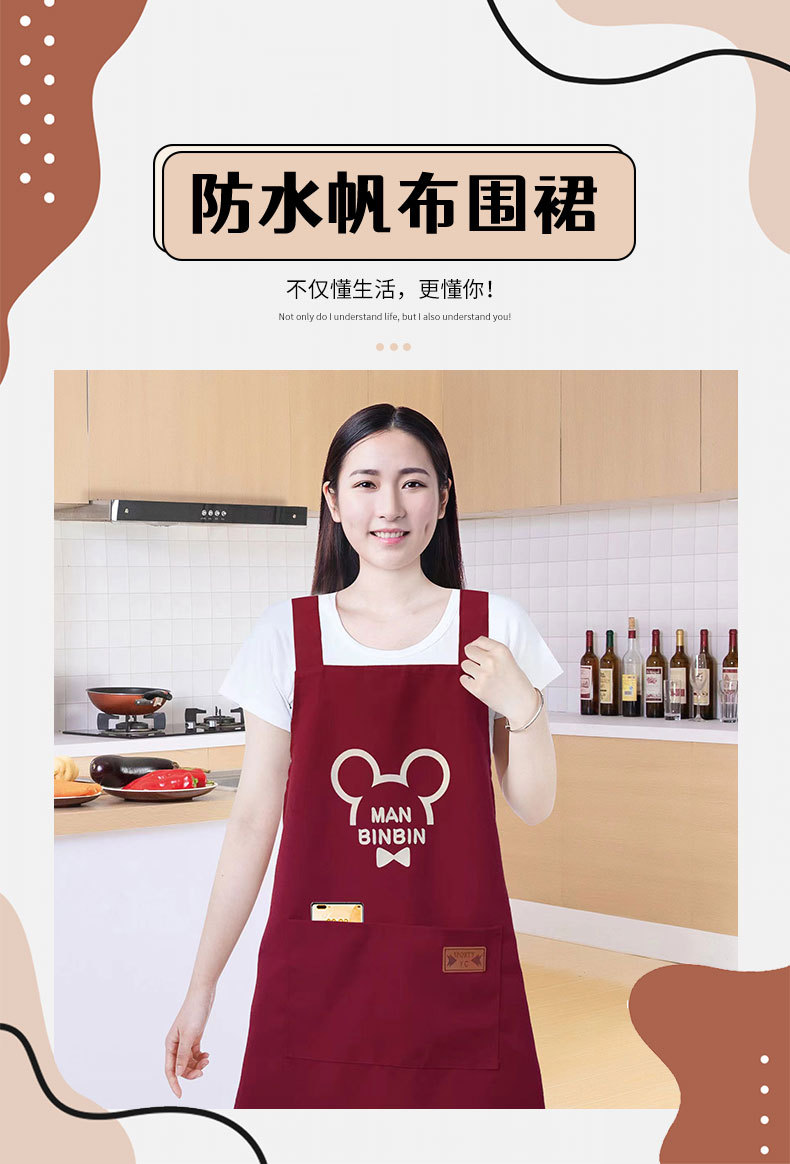 家用厨房防水帆布围裙简约印花广告围裙无袖餐厅工作防污围腰批发