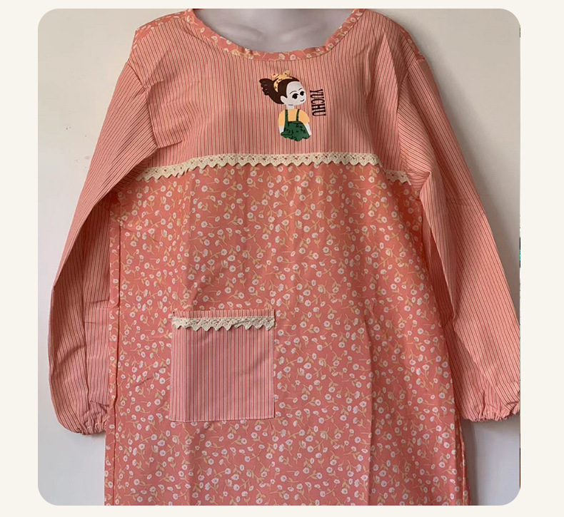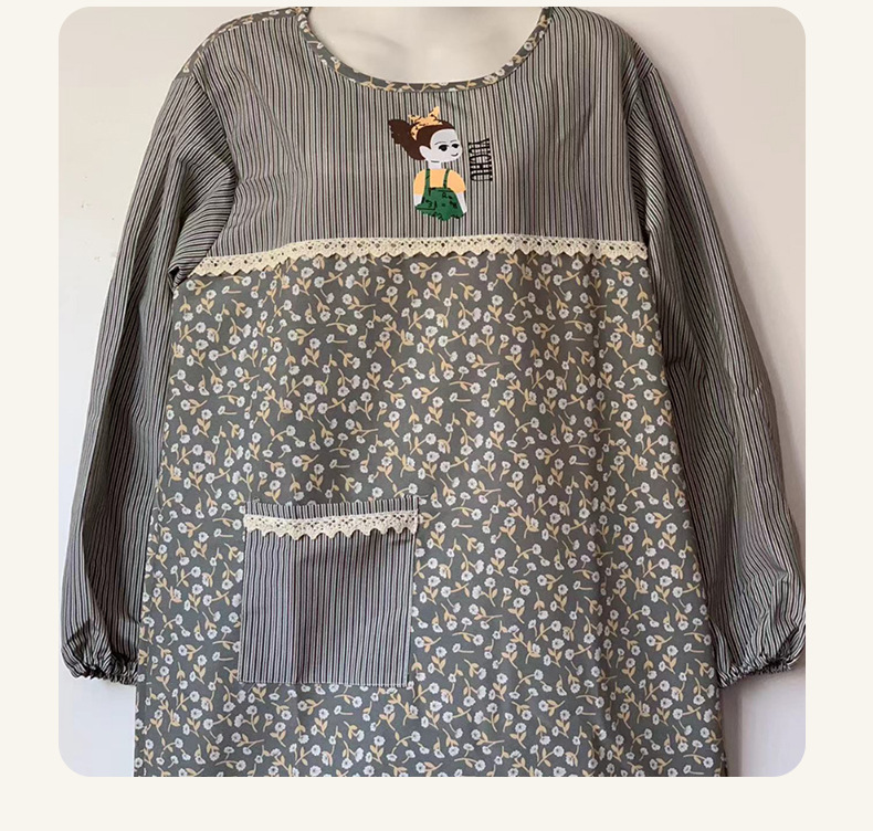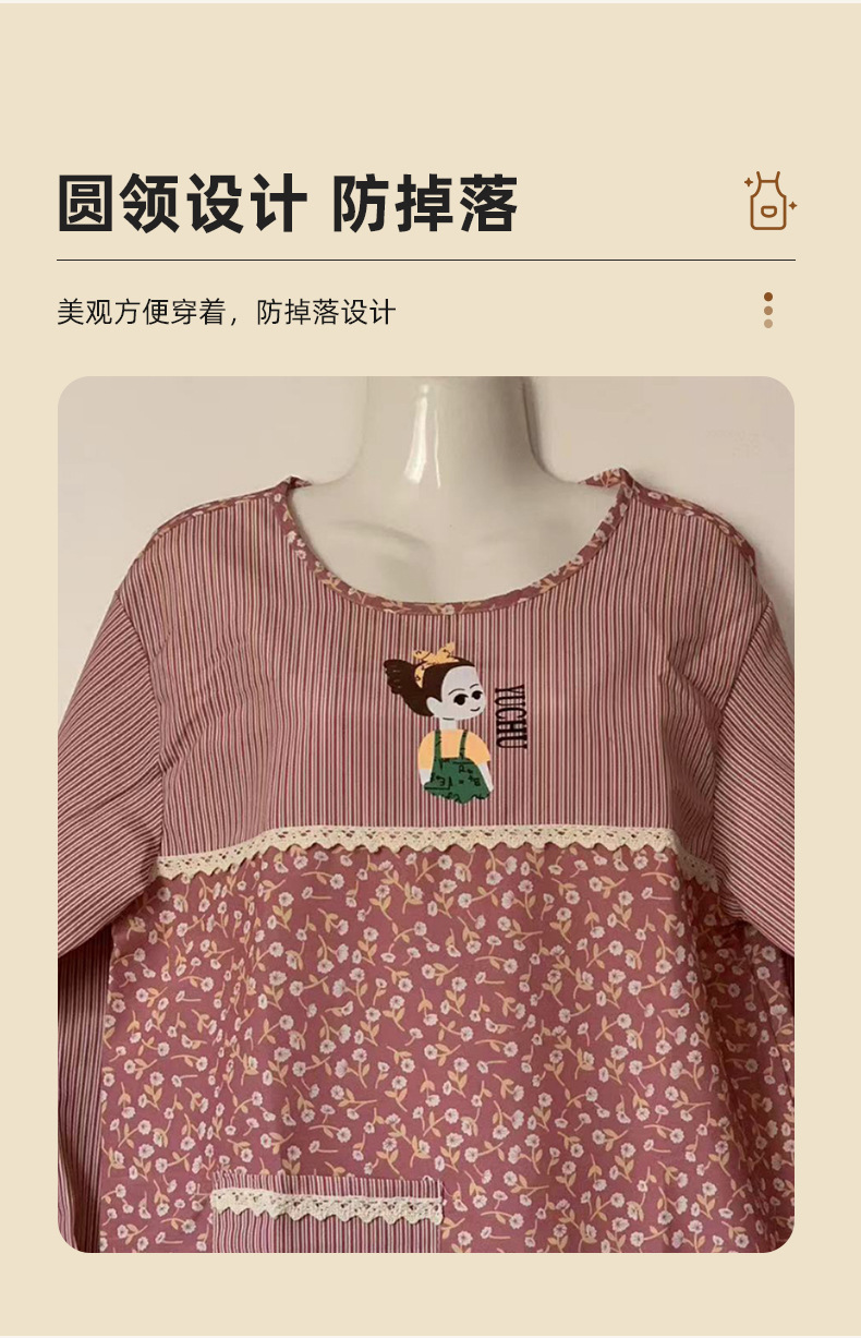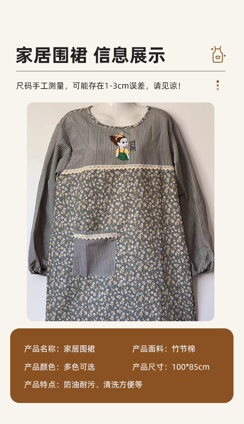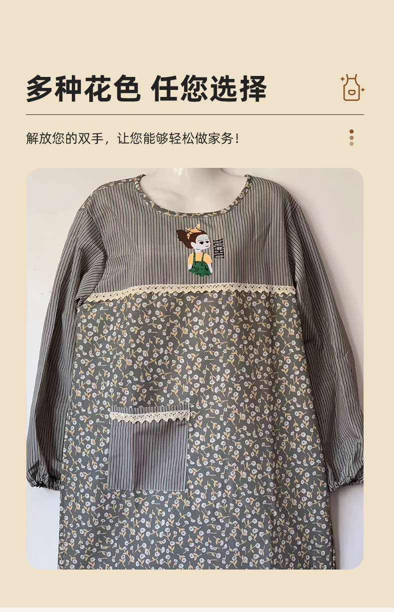 家居围裙时尚印花成人罩衣厨房干活做饭围腰竹节棉工作服有袖围裙