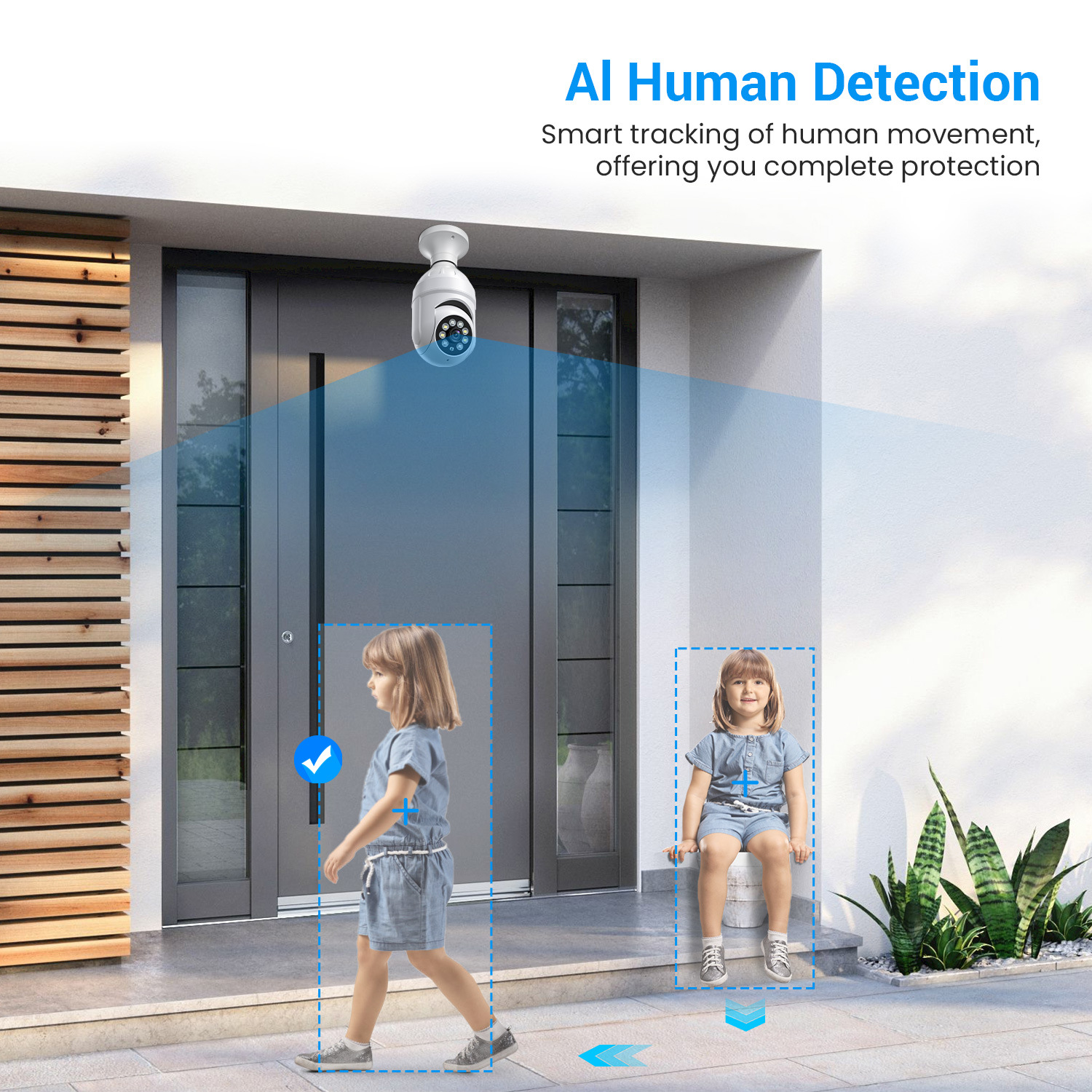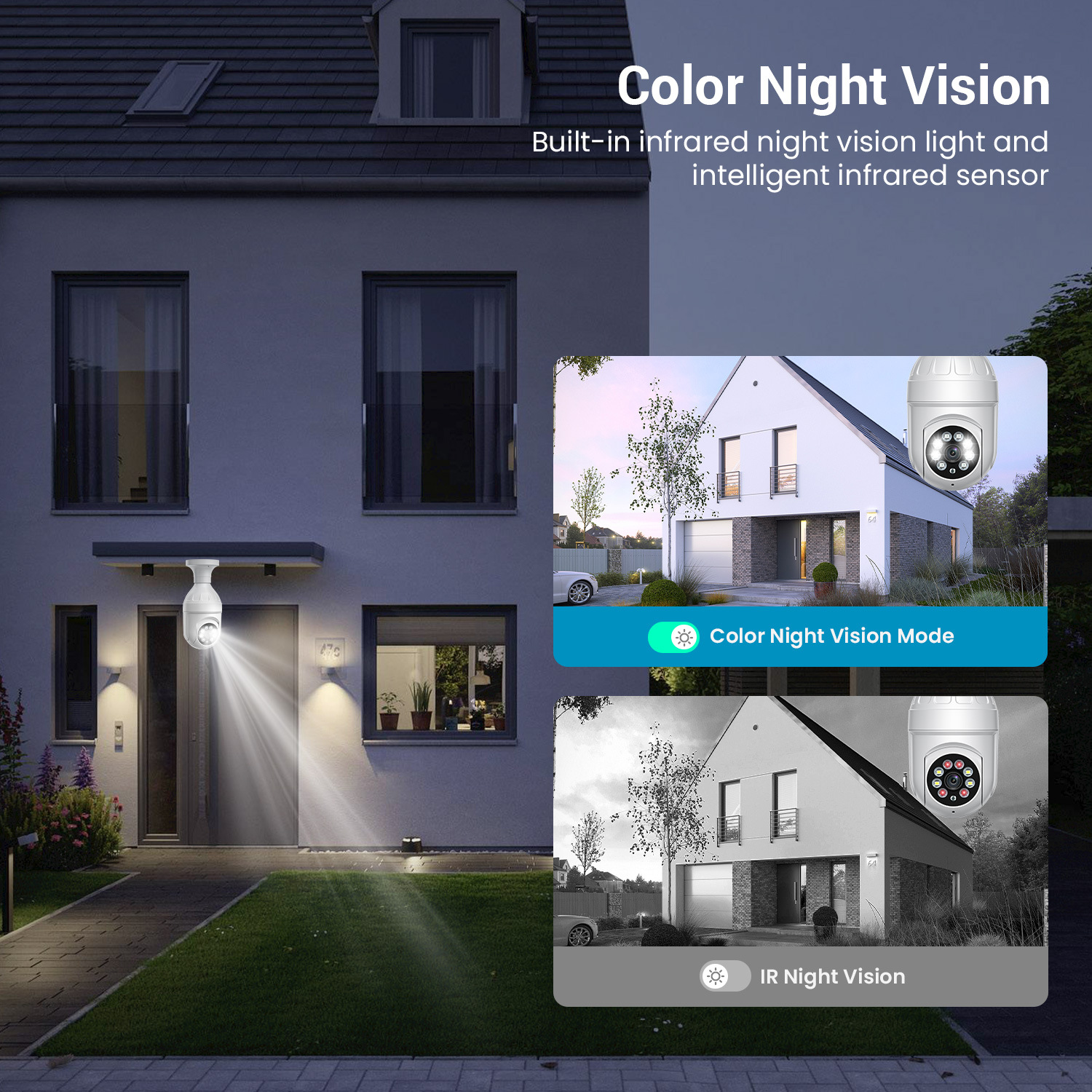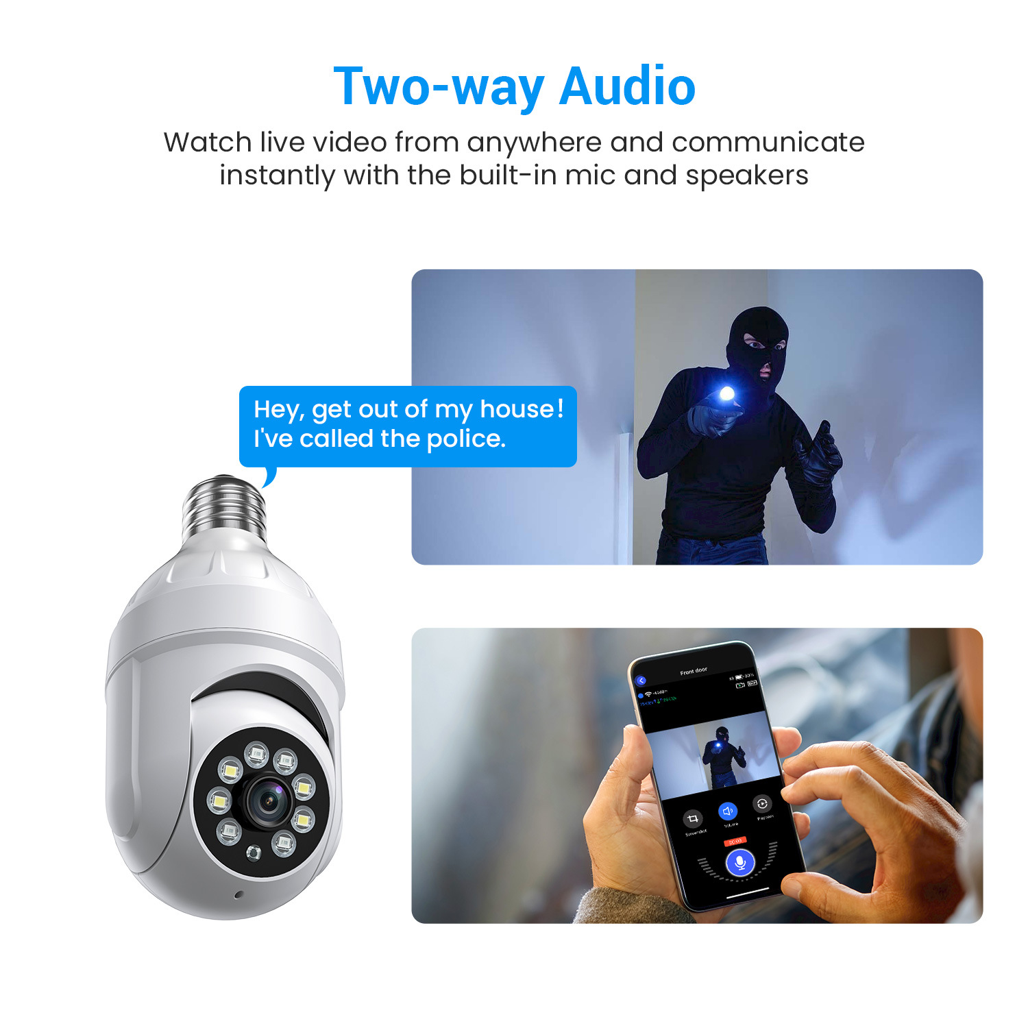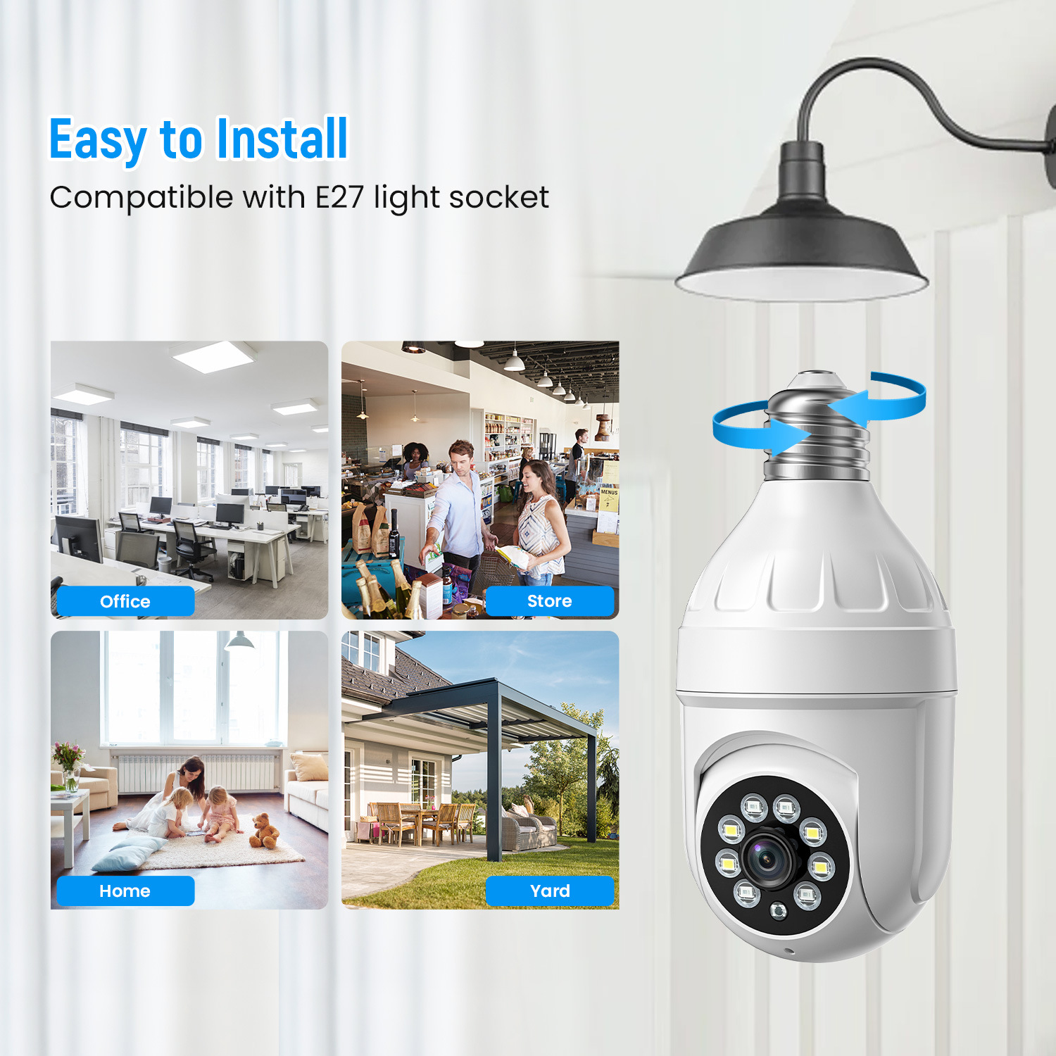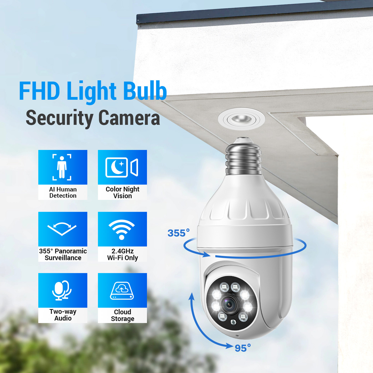 AI外贸灯泡监控摄像头WiFi无线360度夜视全彩网络高清家里监控器