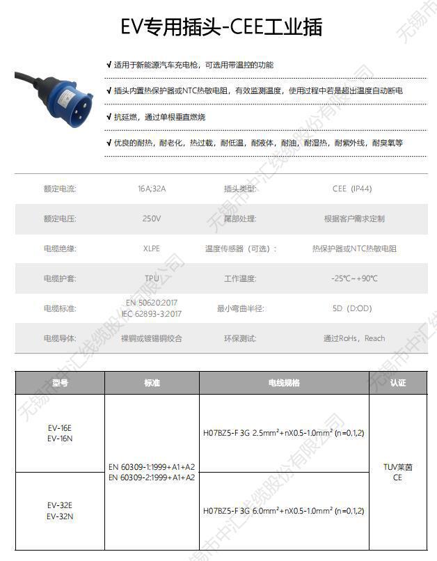 欧标德标新能源汽车充电枪插头TUV认证CEE工业插头16A带温控EV插