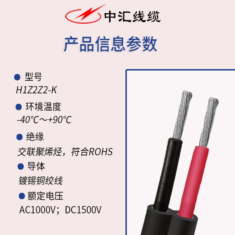 - 规格型号:2*10mm²*1500V*2芯*镀锡无氧铜丝*XLPE*XLPE