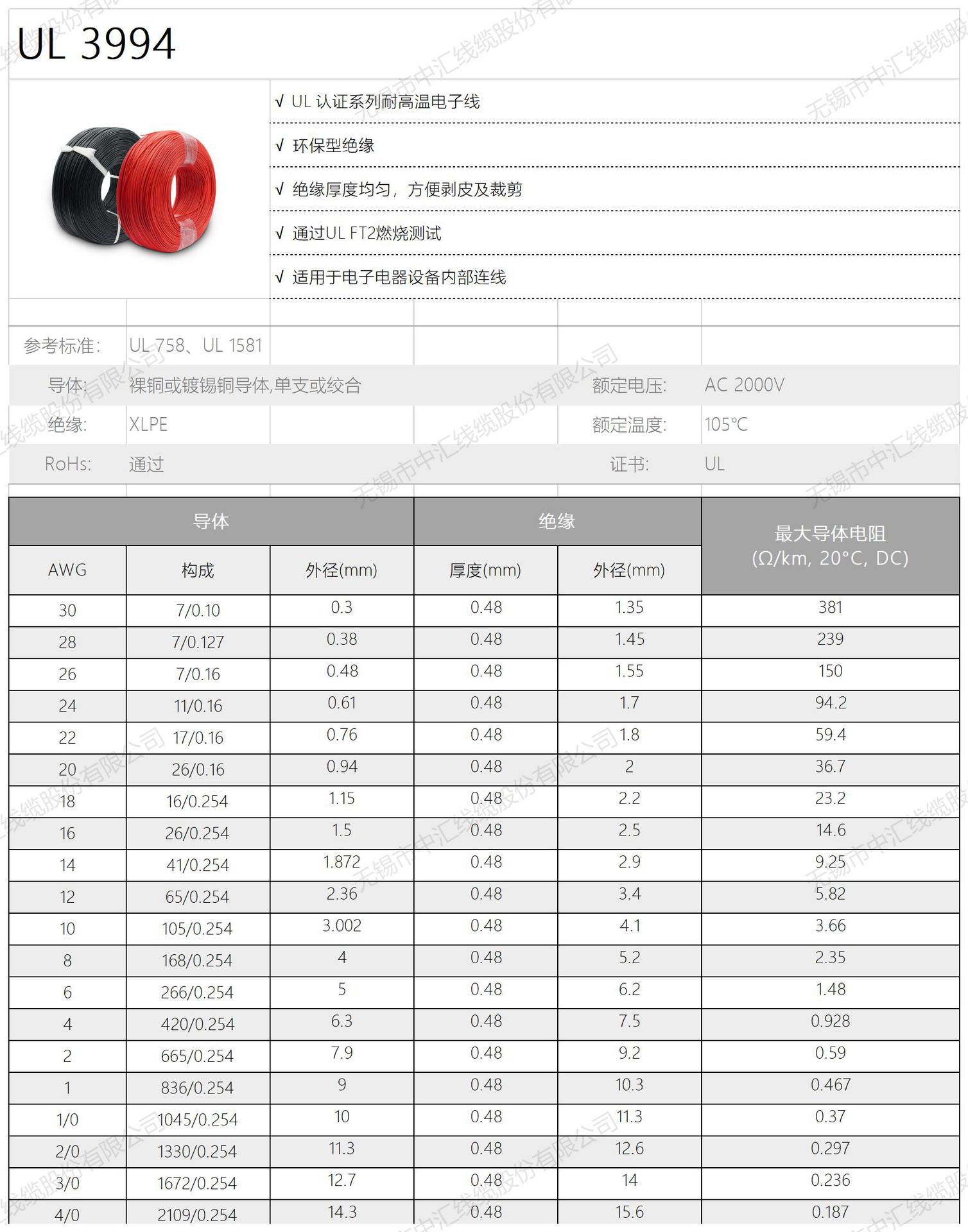 储能电缆美标UL3994跨境蓄电池镀锡铜裸铜芯电子线耐高温阻燃