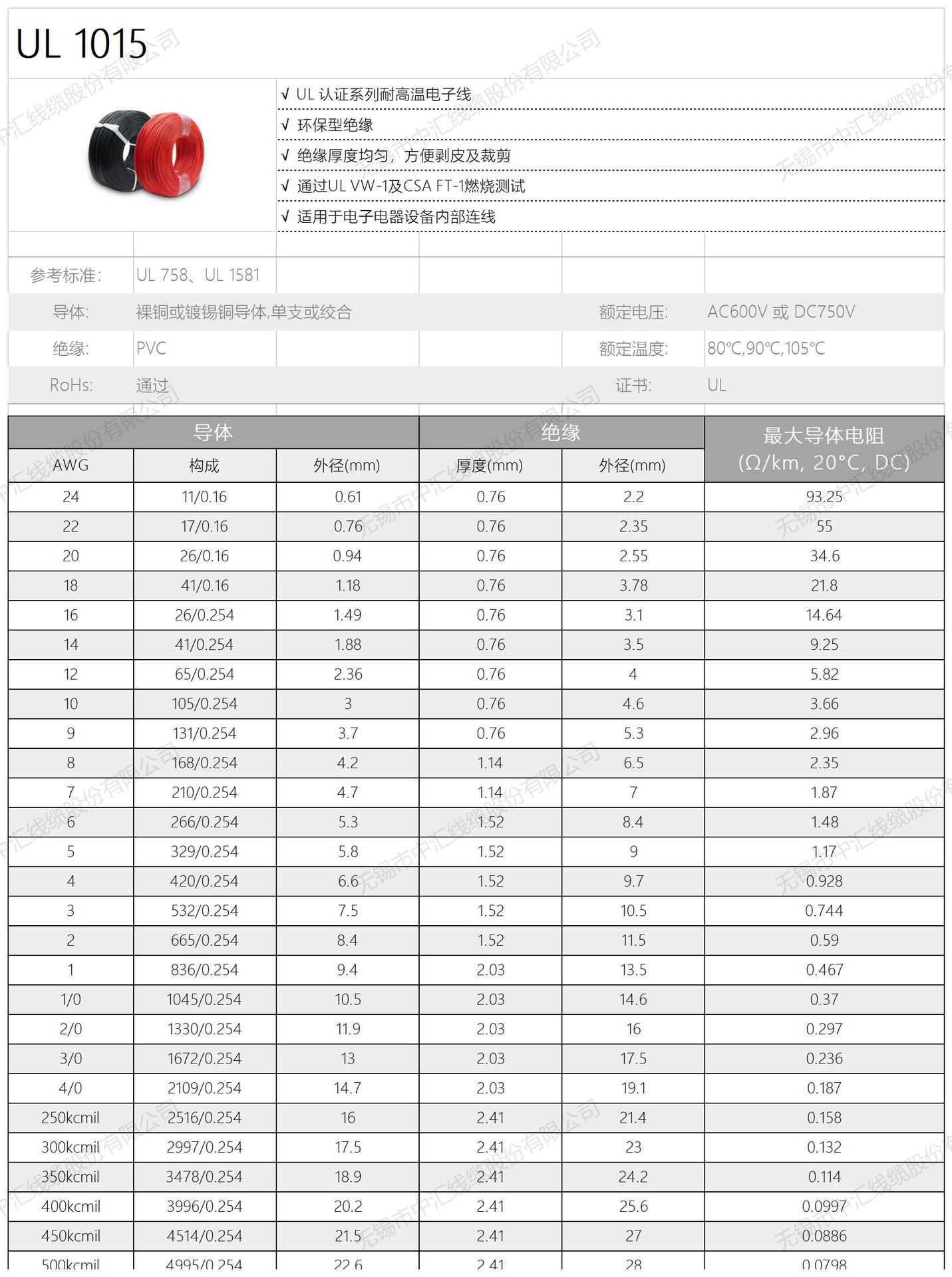 - 型号:UL1015