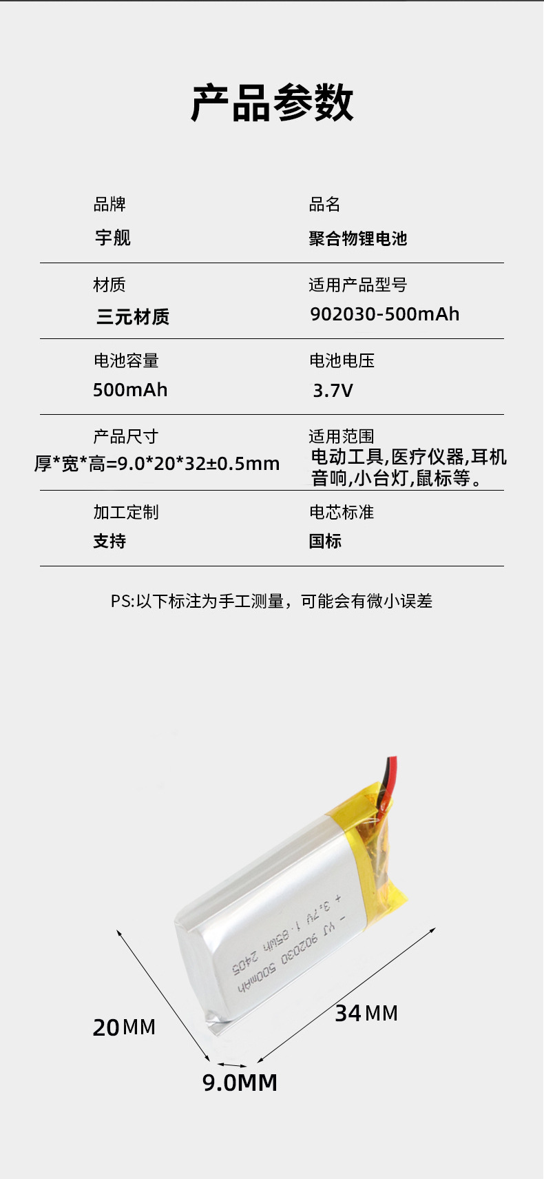 厂家直供902030锂电池3.7V耳机蓝牙鼠标唱戏机音响电池