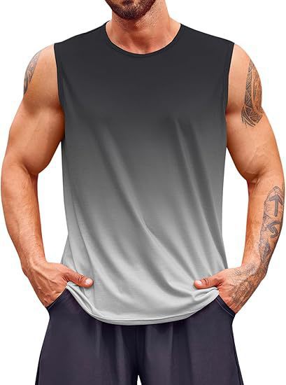跨境热卖新品夏季健身运动背心男士跑步训练宽松3D打印无袖t恤
