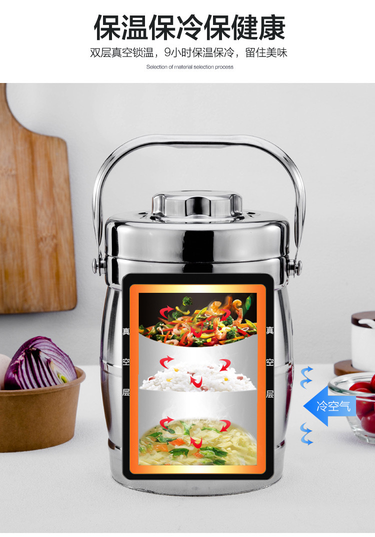 保温真空双层提锅304不锈钢保温桶饭盒学生上班族饭盒可印LOGO
